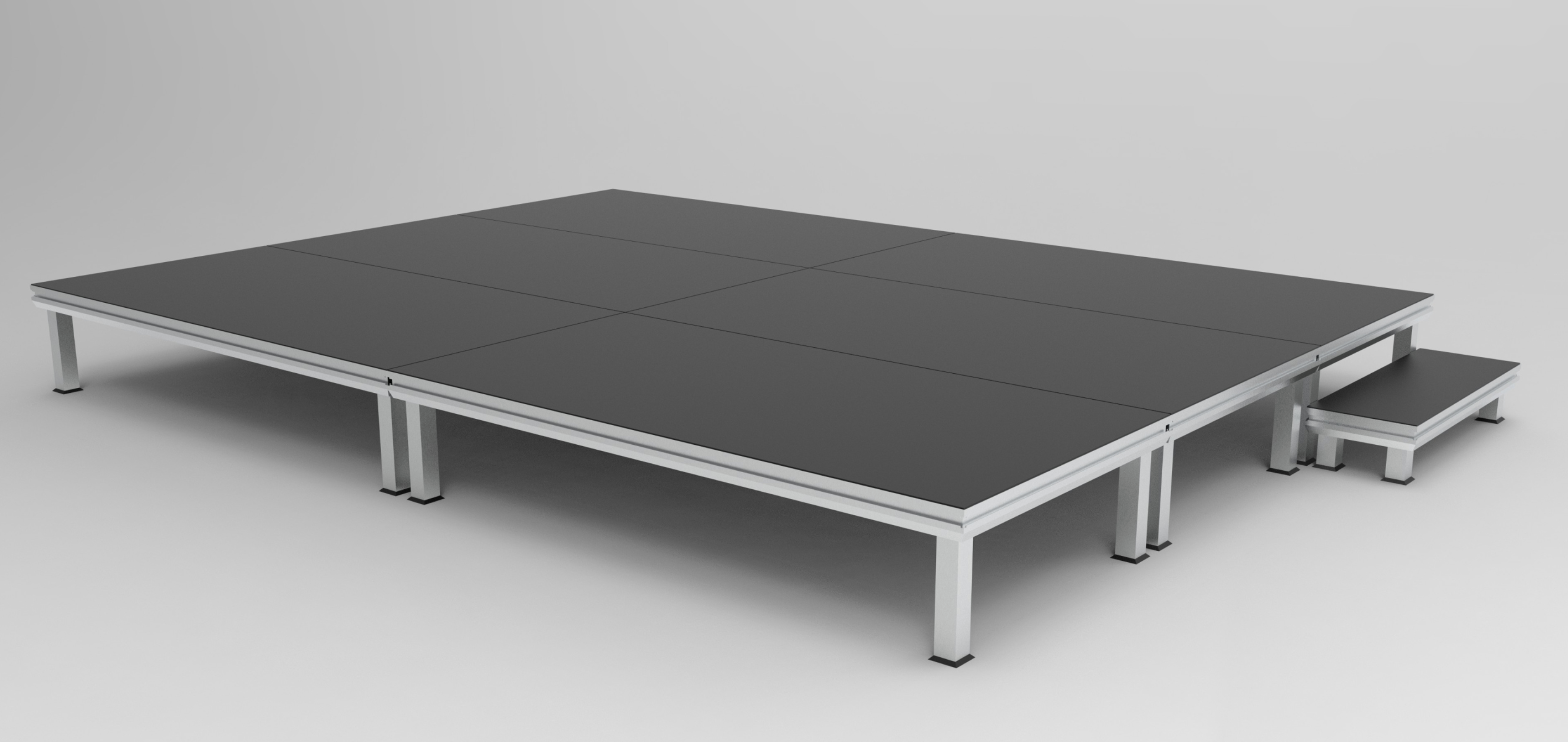 • Możliwość rozbudowy – scena może być rozszerzona o barierki, dodatkowe schody lub kolejne segmenty podestów.
