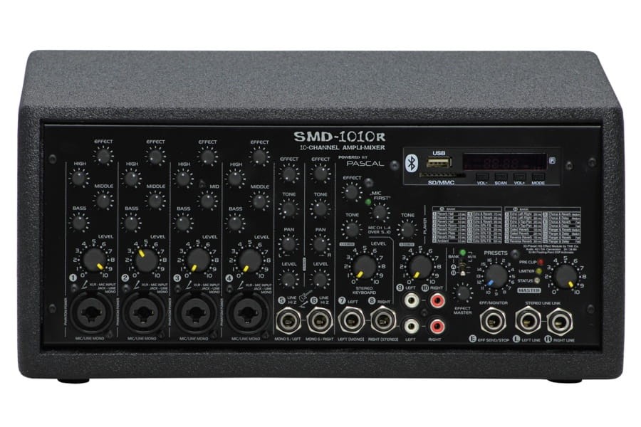 LDM SMD-1010R to wysokiej klasy powermikser polskiej produkcji, zaprojektowany z myślą o nagłośnieniach mobilnych, scenicznych oraz instalacjach stacjonarnych w szkołach, domach kultury, kościołach i firmach eventowych. Łączy mocną końcówkę mocy, rozbudowany mikser audio oraz procesor efektów DSP – wszystko w jednym, solidnym urządzeniu.