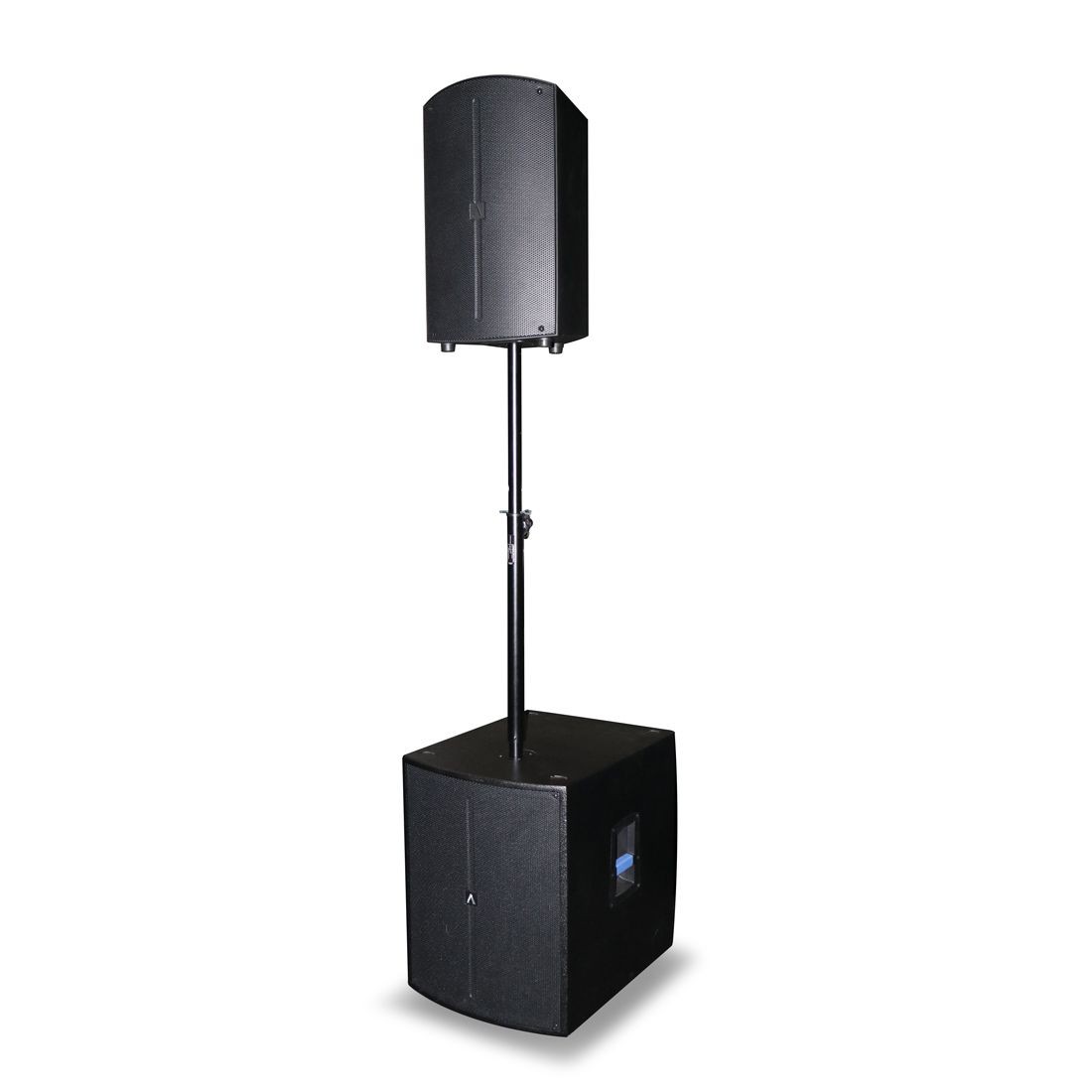 Stabilny pręt dystansowy z gwintem M20 i regulowaną wysokością od 104 do 140 cm Średnica pręta 35 mm do standardowych kołnierzy głośnikowych