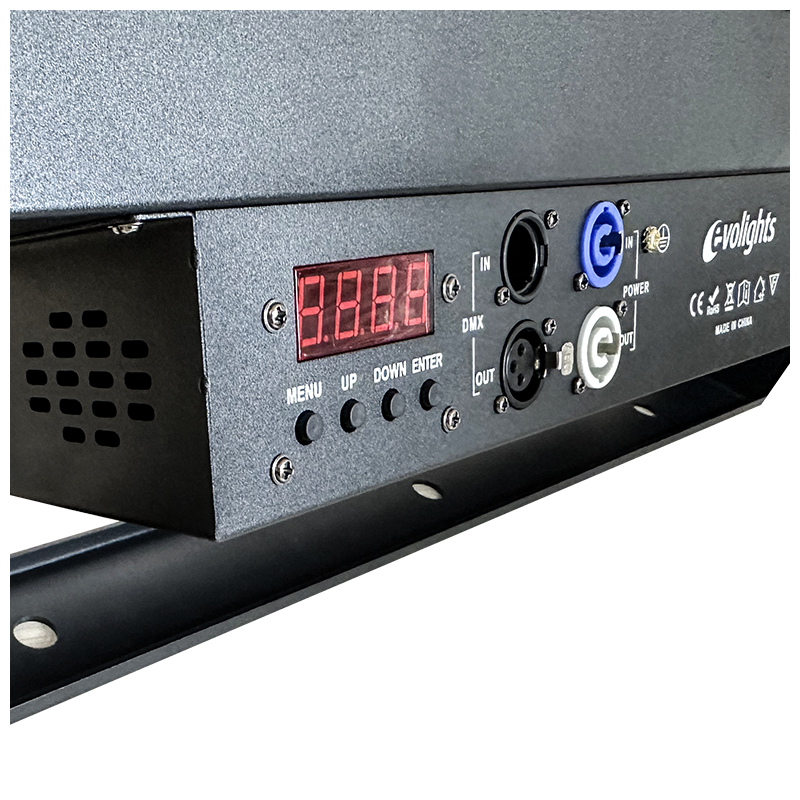 Evolights Lumen Pix Bar charakteryzuje się przede wszystkim bardzo łatwą i intuicyjną obsługą ✅. Listwa ta może pracować samodzielnie lub być kontrolowana, dlatego świetnie sprawdza się na każdej imprezie. Panel sterowania składa się z wyświetlacza LCD oraz 4 przycisków. Za ich pomocą możemy wprowadzać zmiany w ustawieniach menu, ustawić kolory statyczne belki lub wybrać jeden z 4 interesujących nas trybów pracy: