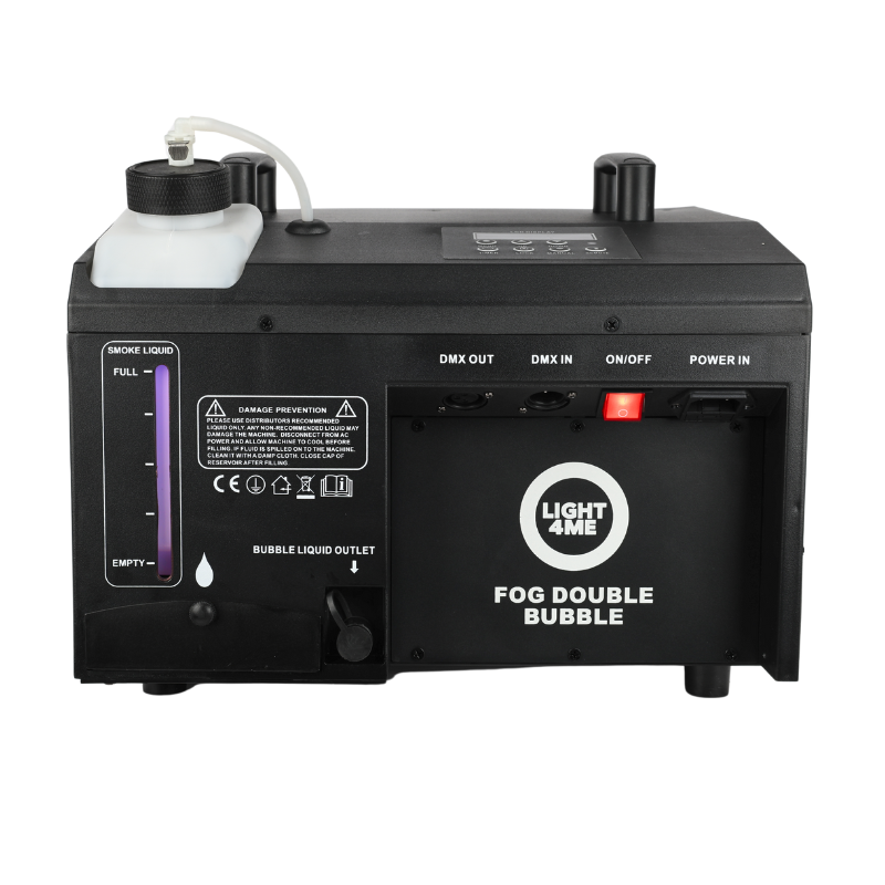 LIGHT4ME FOG DOUBLE BUBBLE wyróżnia się nie tylko świetną wydajnością, ale również niezawodnością i bezpieczeństwem. Zbiornik na płyn o pojemności 1,35 l oraz czujnik poziomu płynu gwarantują długotrwałą pracę bez konieczności częstego uzupełniania. Urządzenie wykorzystuje płyn do baniek i płyn do dymu na bazie wody, co jest bezpieczne dla zdrowia i środowiska. Dodatkowo, czas nagrzewania wynoszący około 6 minut sprawia, że sprzęt jest gotowy do użycia w mgnieniu oka ✅.