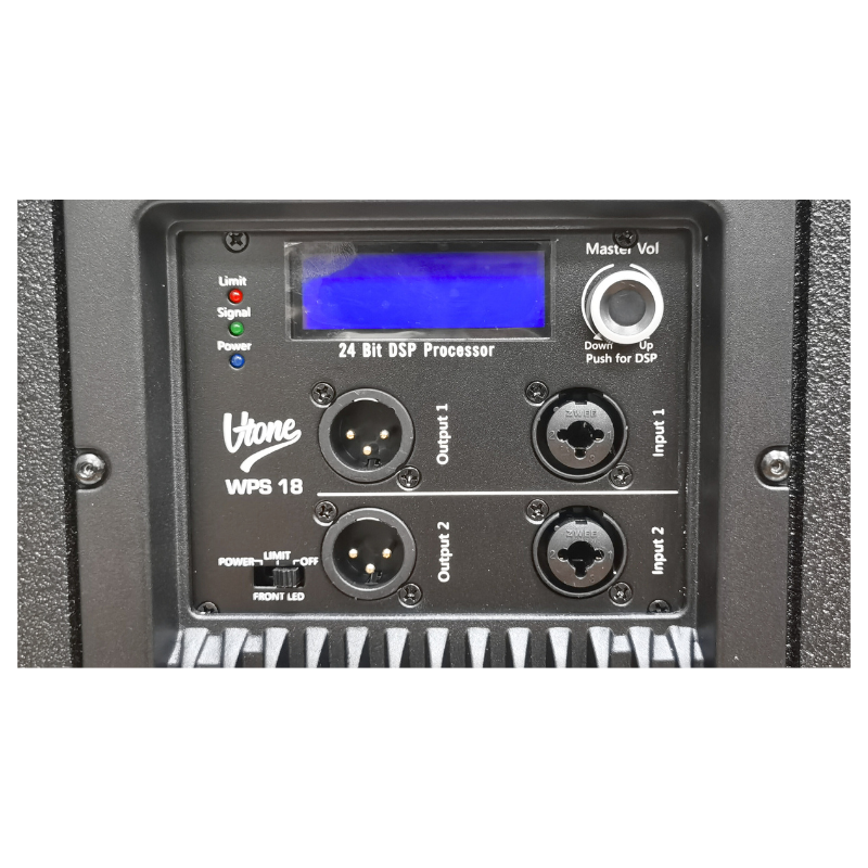 V-TONE WPS 18 oferuje szerokie możliwości połączeń dzięki dwóm zbalansowanym wejściom XLR/jack 6,35 mm (combo) i dwóm zbalansowanym wyjściom XLR, co umożliwia bezproblemową integrację z istniejącymi systemami nagłośnienia. Subwoofer oferuje cztery presety DSP - Live, Music, DJ1 i DJ2 - dzięki którym można łatwo dostosować urządzenie do różnych scenariuszy użytkowania. Dodatkowa funkcja opóźnienia (delay) do 30 ms pozwala na precyzyjne dostosowanie dźwięku do akustyki każdego pomieszczenia ✅. Dzięki opcji zmiany polaryzacji użytkownik ma pełną kontrolę nad fazą dźwięku, co jest kluczowe w profesjonalnych instalacjach. Dodatkowo, gwintowane gniazdo na sztycę kolumnową (gwint M20) pozwala na łatwew łączenie z innymi elementami systemu. Subwoofer jest także wyposażony w wskaźniki świetlne LIMIT, SIGNAL i POWER, które ułatwiają kontrolę nad jego pracą ✅.