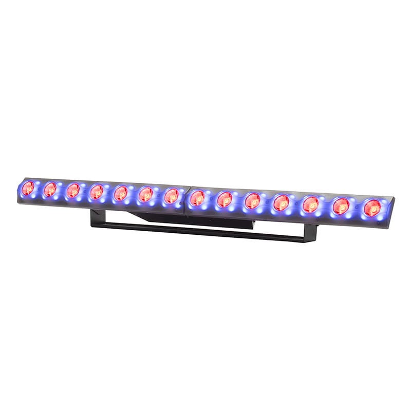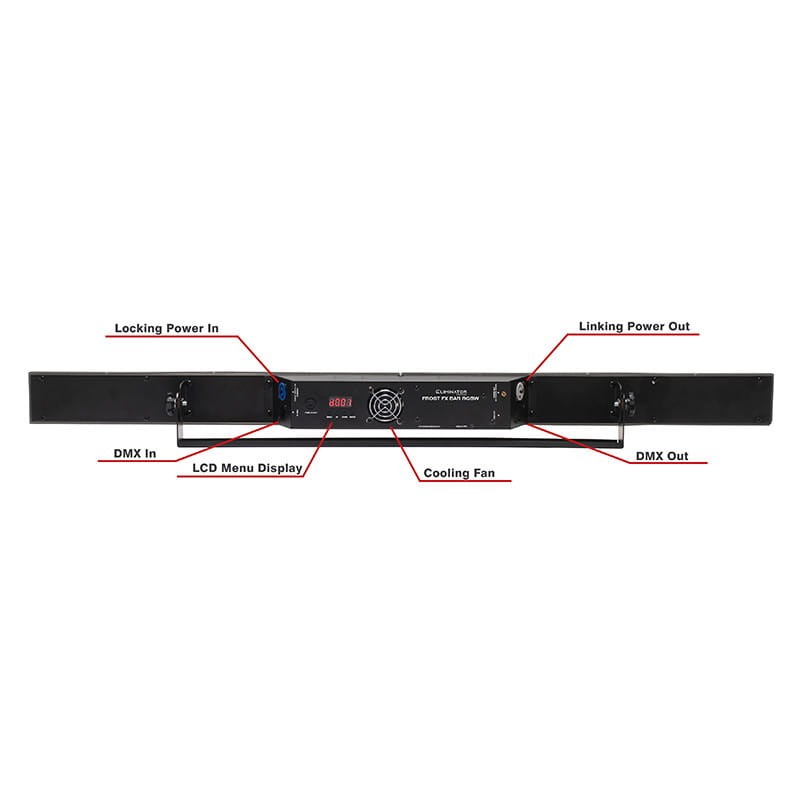 Eliminator Lighting Frost FX BAR RGBW to 1-metrowa liniowa oprawa oświetleniowa do rozrywki, która tworzy rozmycia kolorów i zapierający dech w piersiach efekt pogoni za kolorami. Posiada dwa rodzaje kolorowych diod LED w jednej oprawie. Posiada czternaście diod LED RGBW o mocy 3 W z soczewką ACL z przodu urządzenia, aby uzyskać intensywne efekty wiązki kolorów. Ponadto ma osiemdziesiąt cztery diody LED RGB SMD za matową soczewką z tworzywa sztucznego, które tworzą świecące wzory pogoni za kolorami. Oba zestawy diod LED działają niezależnie. Każde urządzenie ma 45 wbudowanych pokazów świetlnych, które można uruchomić za pomocą wbudowanego 4-przyciskowego wyświetlacza lub uruchomić w konfiguracjach DMX, dźwiękowych lub podstawowych/dodatkowych. Wiele urządzeń może być połączonych ze sobą za pomocą 3-pinowych połączeń danych DMX In/Out i blokowania połączeń wejścia/wyjścia zasilania, dzięki czemu zasilanie może być połączone szeregowo z jednego urządzenia do drugiego. Użytkownicy mogą wybierać spośród 64 wbudowanych makr kolorów i 8 elastycznych trybów kanałów DMX. Oprawa oferuje ściemnianie elektroniczne 0-100% i wymaga maksymalnie 55 W na jednostkę. Frost FX Bar RGBW poziomo lub pionowo, aby uzyskać unikalne efekty na scenach, w barach, salonach, klubach, zespołach i mobilnych animatorach. Wiele urządzeń można umieścić bezpośrednio obok siebie, aby stworzyć jednolitą opaskę lub kolorowe światło.