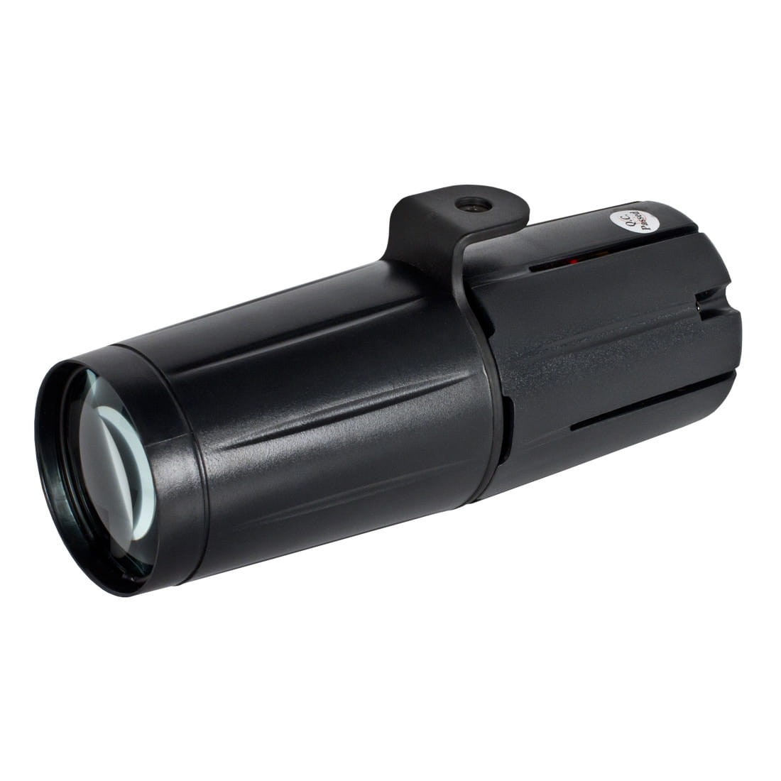The Pinspot LED II is has a 3W cool white LED source with a sharp 3-degree beam. It’s designed for spotting objects or for creating mid-air effects. It comes with a hanging bracket and a 12-degree lens that may be easily changed out. The Pinspot LED II is ETL approved.