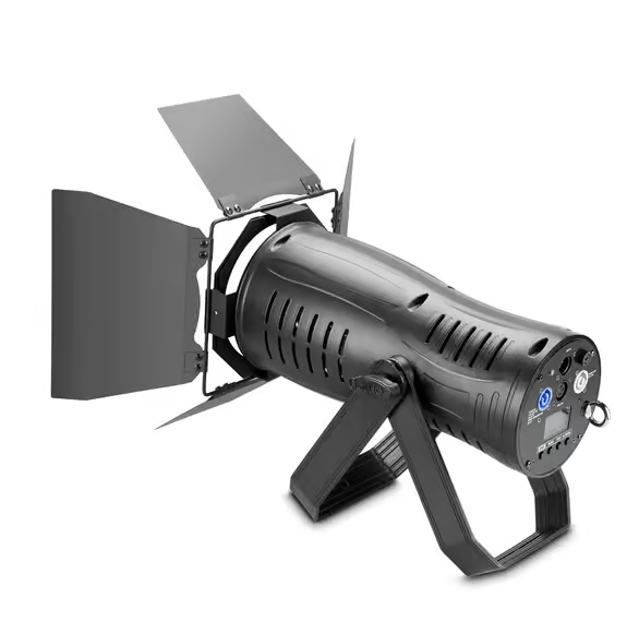 Cameo CL 200 G2 to wydajny reflektor wyposażony w pojedynczą białą diodę LED COB o mocy 200 W, której temperatura barwowa jest regulowana w zakresie od 3200 K do 7800 K. Oferuje on kąt rozsyłu wiązki 25° i natężenie oświetlenia 32 000 luksów w odległości 1 metra. Częstotliwość odświeżania 17 500 Hz gwarantuje brak migotania, co czyni ten reflektor idealnym wyborem do zastosowań filmowych i telewizyjnych. Reflektor CL 200 G2 oferuje 6 trybów sterowania DMX, aktywację dźwiękiem i ściemnianie główne. Reflektor posiada funkcję szybkiego stroboskopu z regulowaną częstotliwością błysków od 1 do 30 Hz i może pracować w trybie głównym, podrzędnym i autonomicznym. Reflektor znajduje się w wytrzymałej metalowej obudowie z wentylatorem sterowanym temperaturowo i 4-przyciskowym wyświetlaczem, co ułatwia konfigurację. 3-pinowe wejścia i wyjścia DMX oraz niebieskie i szare złącza Power Twist umożliwiają bezproblemowe łączenie szeregowe i łączenie zasilania. Wielonapięciowa lampa Cameo CL 200 G2 działa przy napięciu prądu przemiennego 100–240 V i jest wyposażona w drzwi do stodoły kształtujące wiązkę światła.