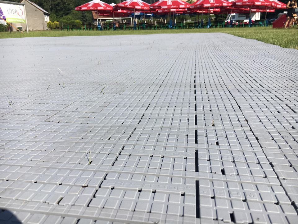 Idealne rozwiązanie dla każdego rodzaju imprezy plenerowej gdzie nie ma potrzeby używania systemów zabezpieczeń przed dużymi ciężarami. PRO-EF można ułożyć zarówno na miejscu samej imprezy oraz zainstalować z tego systemu ciągi piesze i komunikacyjne wokół terenu imprezy. PRO-EF wyposażony jest w system odprowadzania wody dzięki, któremu nawierzchnia nigdy nie jest śliska eliminując tym samym ryzyko upadku i kontuzji.
