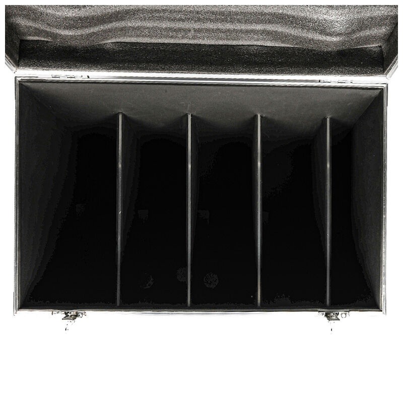 Evolights Lumeno Case 4in1 to ✅ profesjonalna i bardzo solidnie wykonana skrzynia transportowa na 4 reflektory estradowe Lumeno lub inne urządzenia o podobnych do tych reflektorów wymiarach. Kontener wykonany został z grubej, 7-milimetrowej sklejki pomalowanej specjalną, wodoodporną farbą. Jego krawędzie wzmocnione zostały aluminiowymi profilami. Na narożnikach znajdują się kulowe, chromowane osłony dodatkowo zabezpieczające konstrukcję oraz chroniące samo otoczenie skrzyni dzięki wyeliminowaniu ostrych krawędzi.