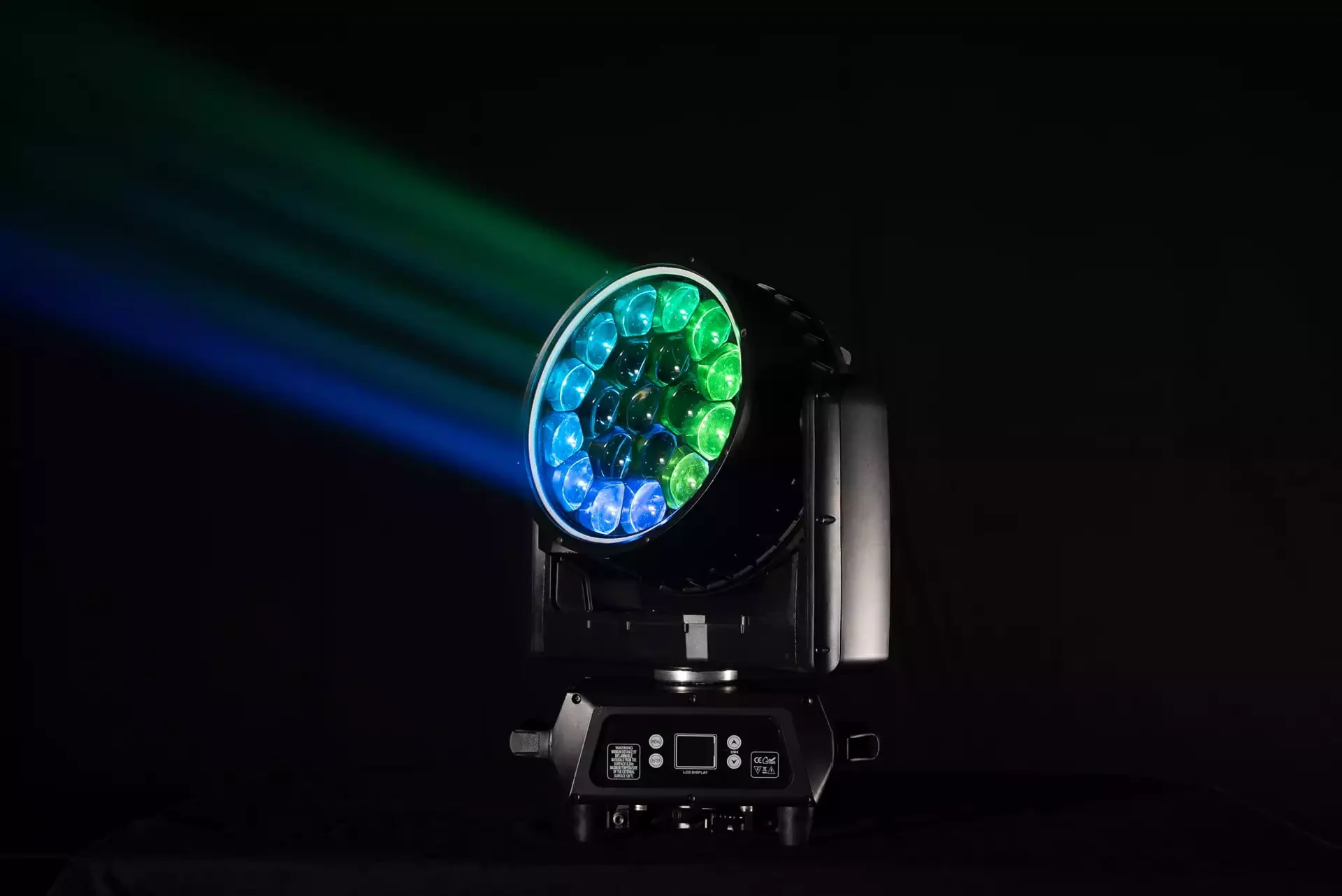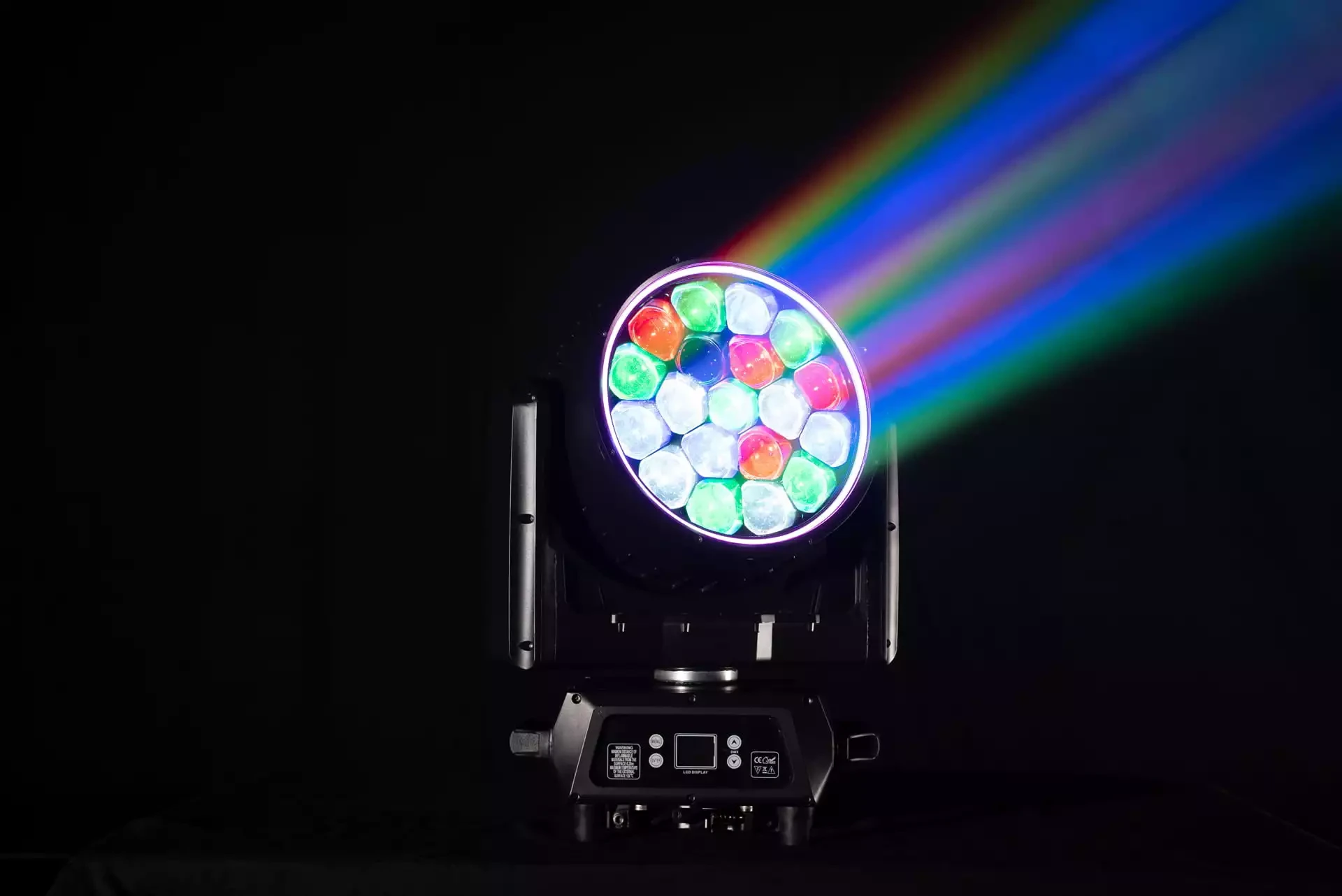 WashFX 1000 IP65 wyposażony został w dwa źródła światła: 19x40 RGBW oraz Ring RGB.