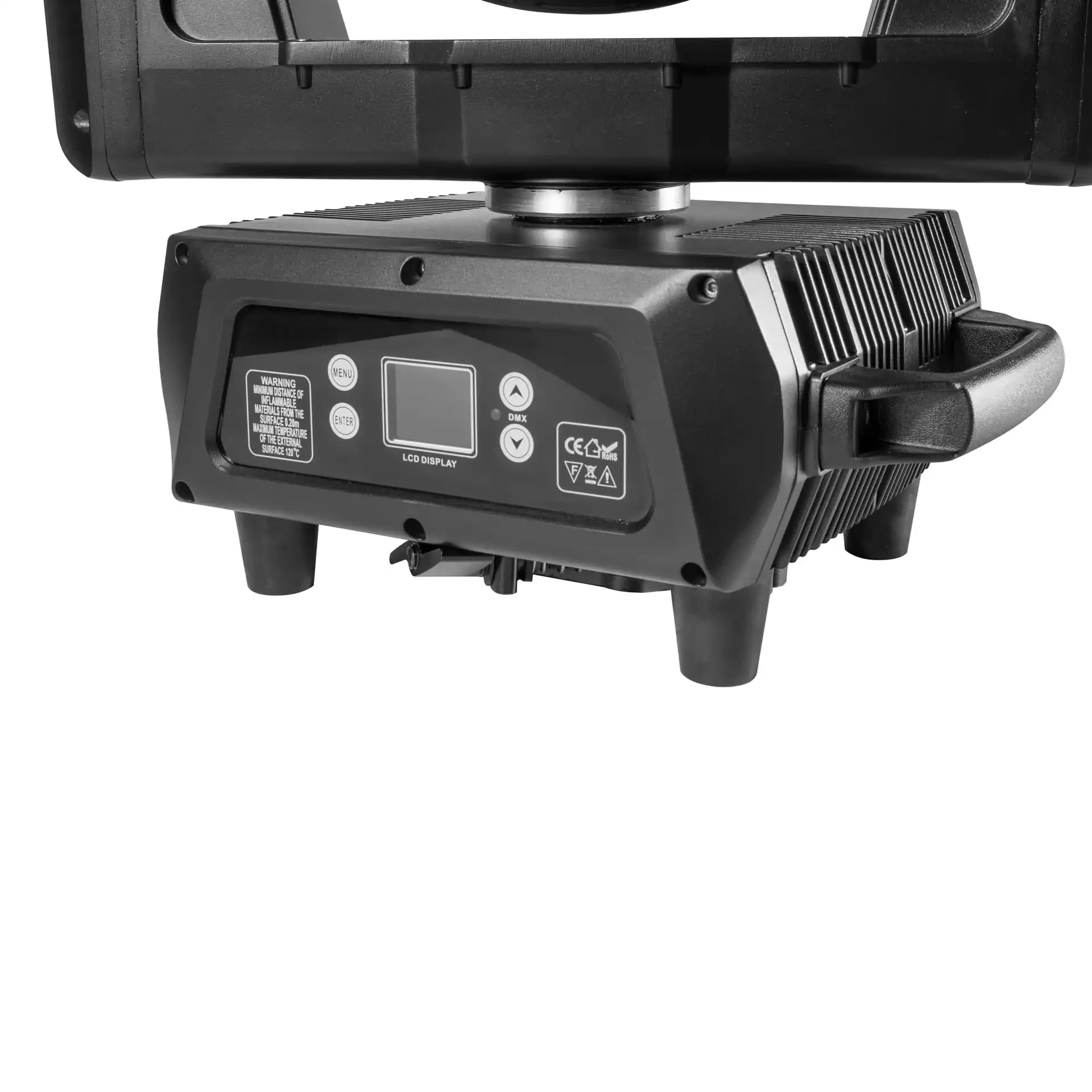 Urządzenie zapewnia płynne sterowanie jasnością, rotacyjne soczewki zarówno na wąskim jak i szerokim zoomie (efekt kalejdoskop), wbudowane shapy oraz obwód obudowy zaakcentowany paskiem LED RGB.