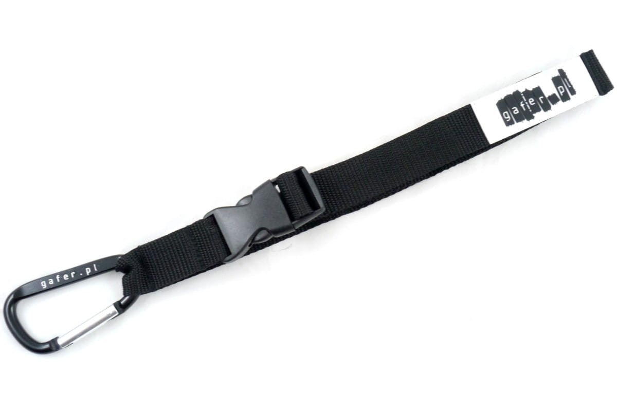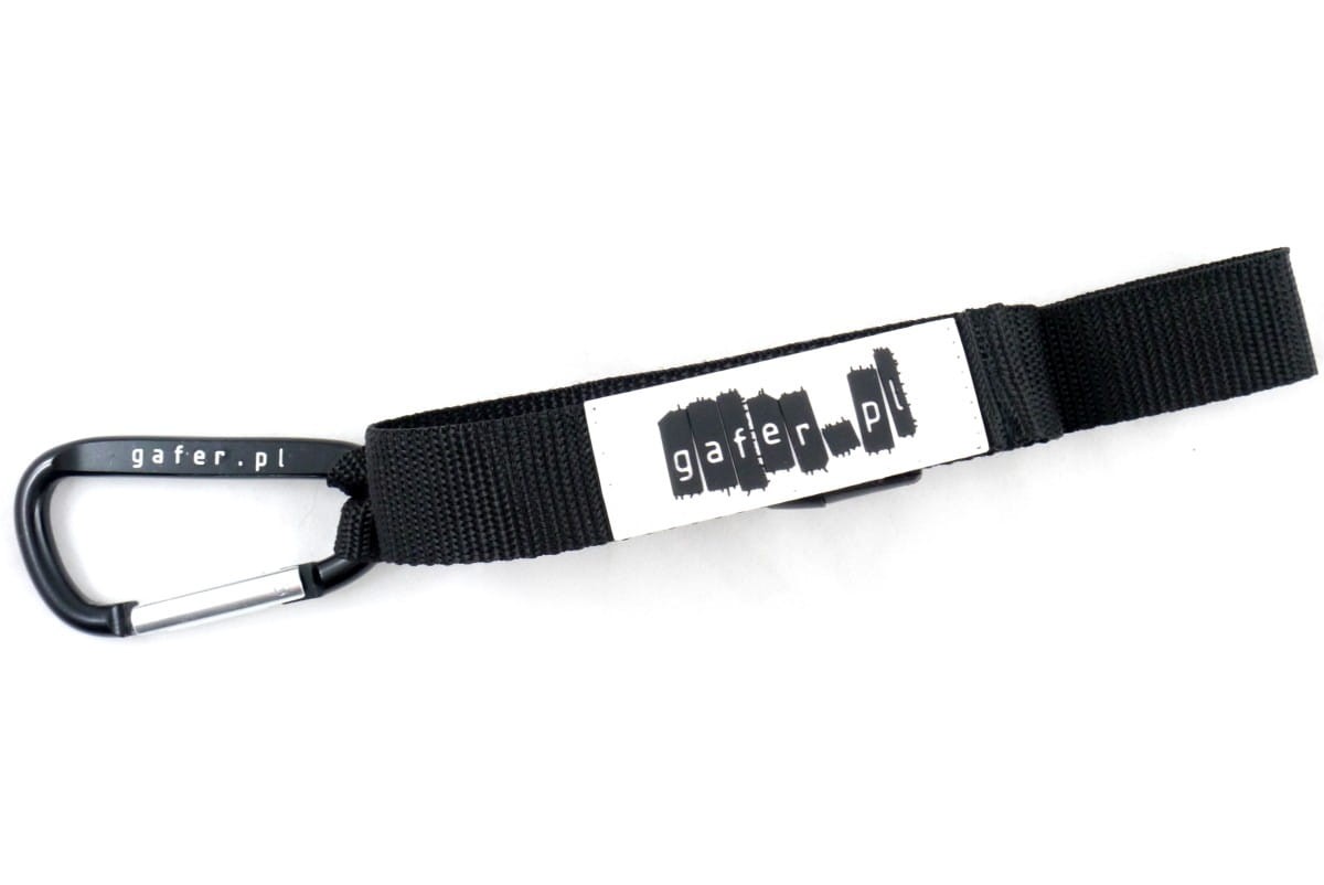 Wygodna smycz gafer.pl na karabinku do zawieszania taśm gafer tak, aby zawsze były pod ręką. Łatwy i wygodny montaż taśmy.