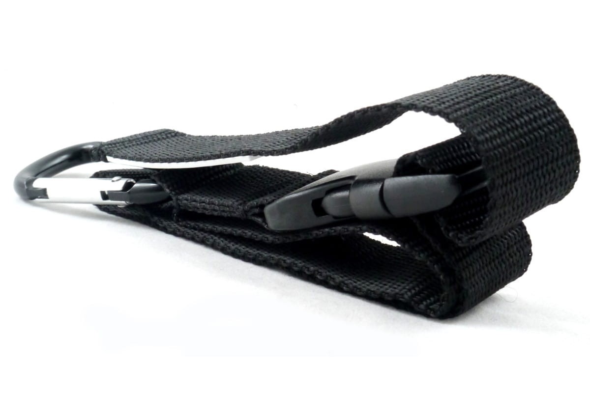 Wygodny, aluminiowy karabińczyk pozwala na zawieszenie holdera na szlufce od paska tak, aby taśmy zawsze były pod ręką.