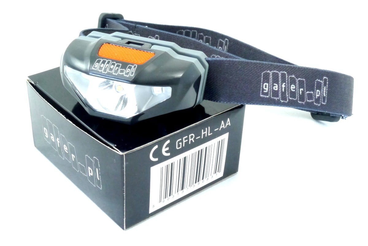 Latarka nagłowna gafer.pl LED ma mnóstwo przemyślanych rozwiązań – zasilanie baterią AA (duży paluszek). Dlaczego taką? Bo taka zawsze jest w case’ie z uszami lub bezprzewodami.