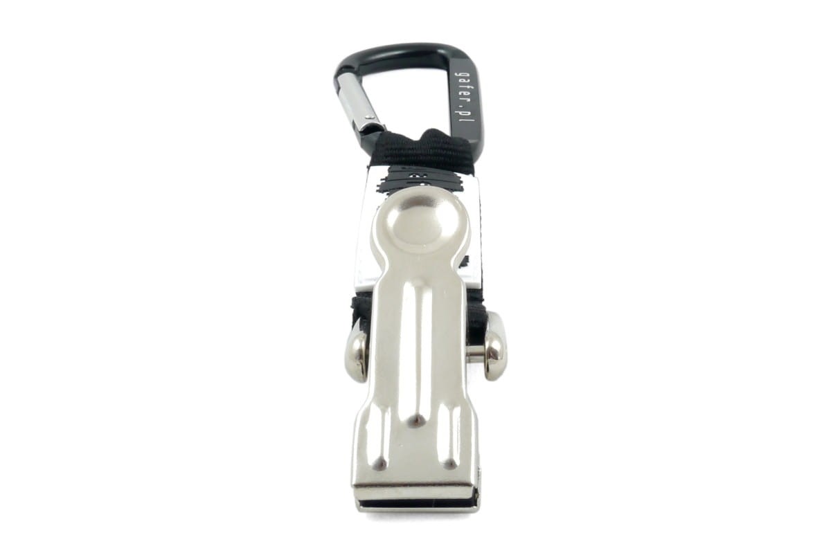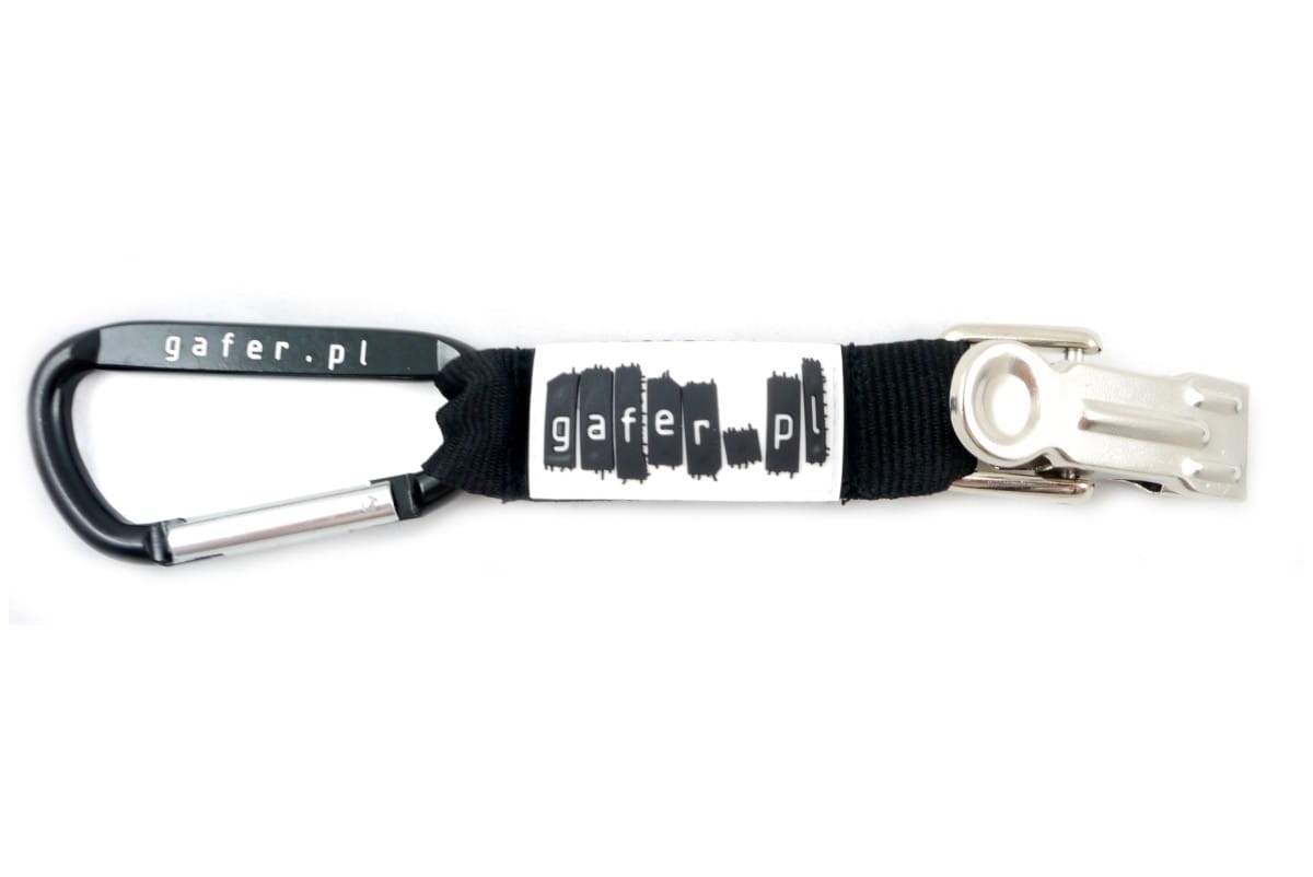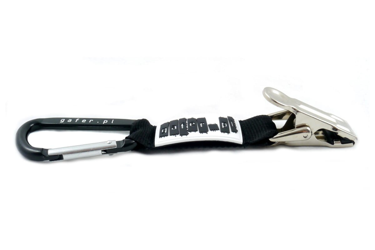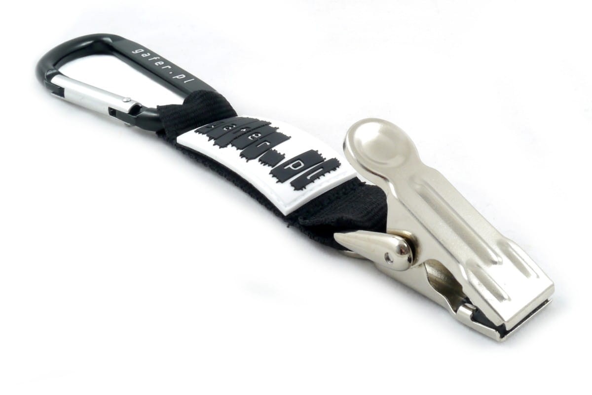 Nasz uchwyt składa się z bardzo mocnego metalowego klipsa, krótkiej wytrzymałej smyczy oraz wygodnego i mocnego karabińczyka.