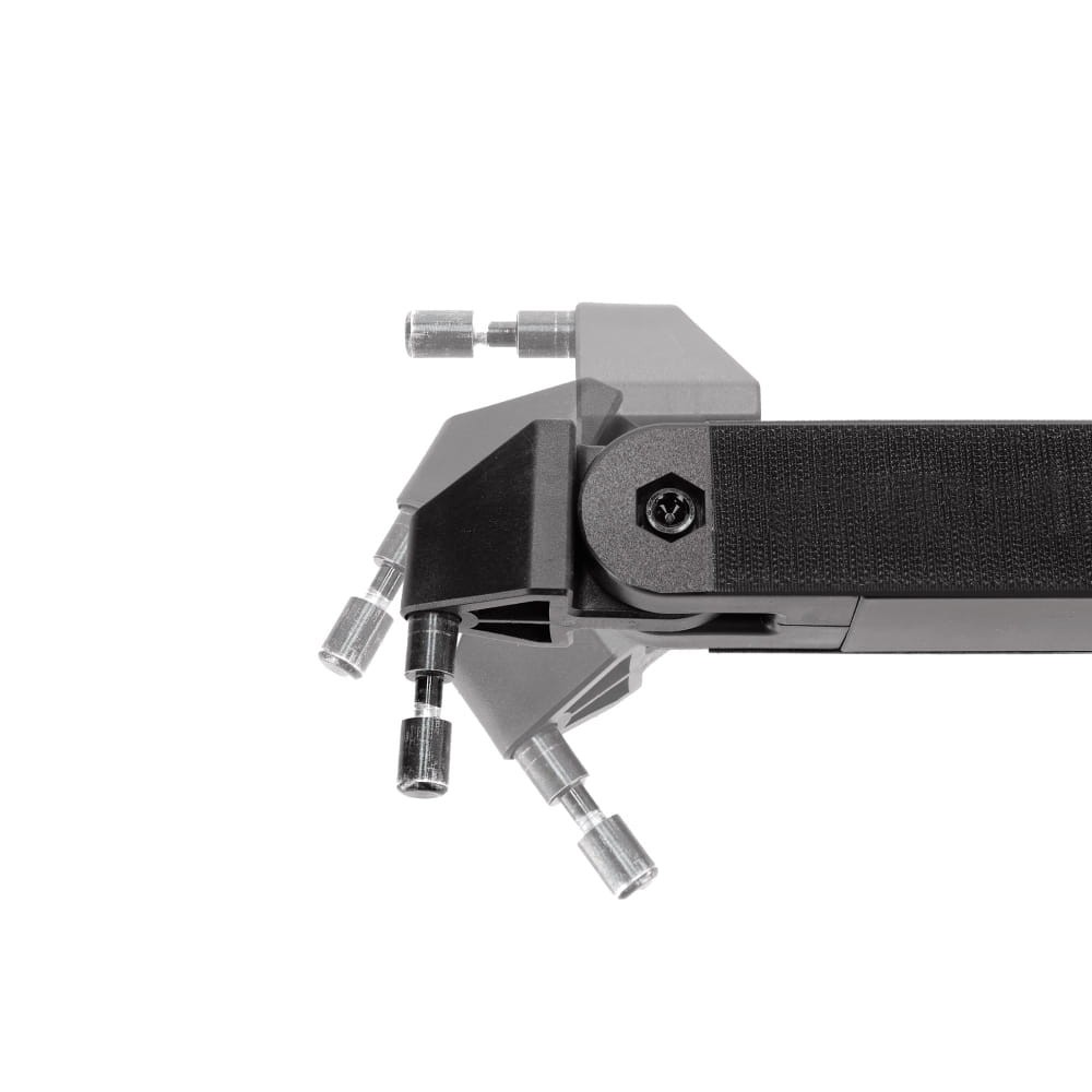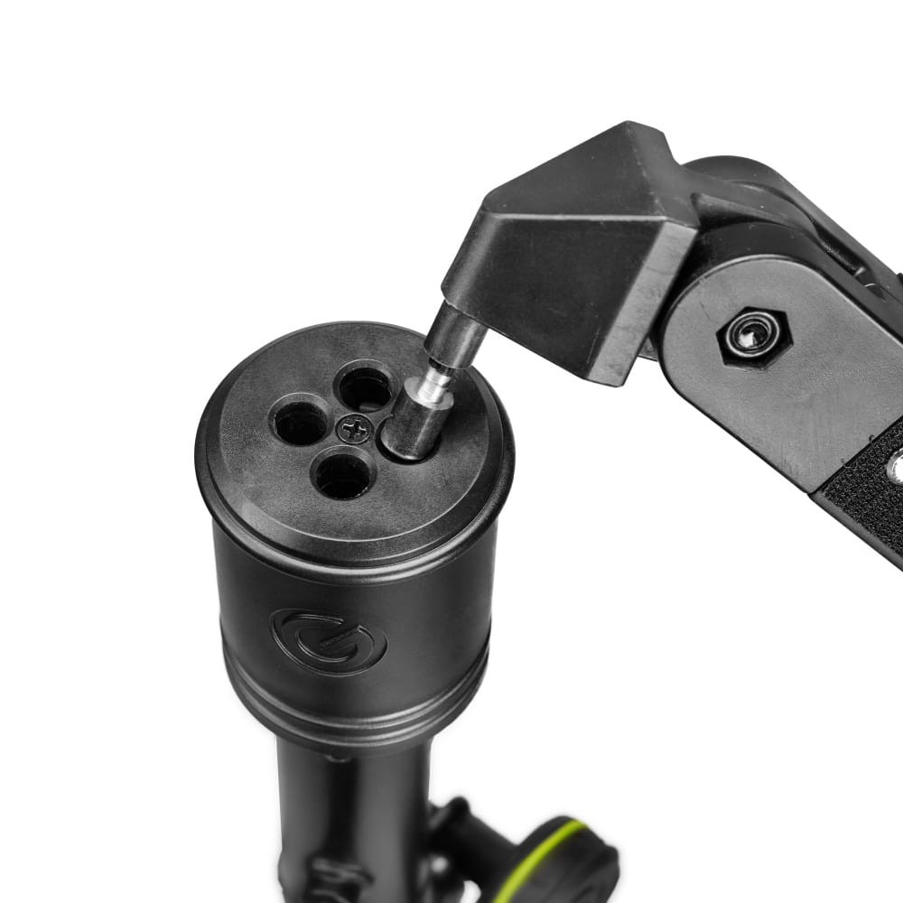 Zbudowany ze stali i plastiku, PAD A ma wewnetrzna srednice 36 mm, idealnie dopasowana do statywu 35 mm. Posiada cztery otwory mocujace na górze, umozliwiajace montaz do czterech drazków teleskopowych PAD T. Dzieki wygodnej funkcji zatrzaskowej do zabezpieczania srub mocujacych drazek teleskopowy, uzytkownicy moga bez wysilku i bezpiecznie zablokowac drazki na miejscu w ciagu kilku sekund.