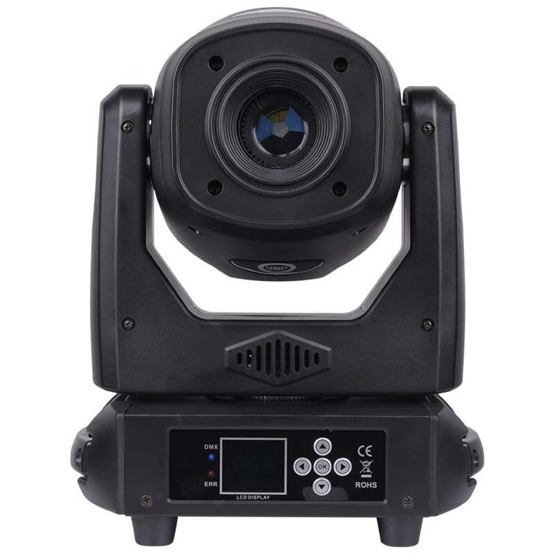Głowica ruchoma LED Focus 100 Spot wyposażona została w wydajną, białą diodę LED o mocy 100 watów, co sprawia, że doskonale spisuje się nawet na ✅ większych scenach. Na tarczy kolorów znajduje się 7 filtrów barwiących światło. Koło gobo mieści 6 nowoczesnych wzorów kształtujących strumień świetlny. Dodatkowy efekt tworzy cyrkularny pryzmat rozszczepiający światło na 5 wiązek.