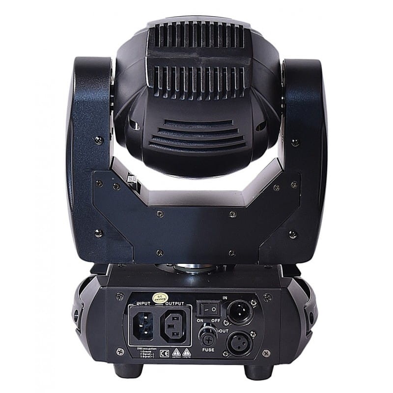 Urządzenie zostało wyposażone w efektowne  programy świetlne aktywne w trybie Sound Mode. Głowica obsługiwana jest za pomocą 4 przyciskowego menu i czytelnego, kolorowego wyświetlacza LCD.  Aby w pełni wykorzystać możliwości głowic typu spot, sugerujemy zakup w wiekszej ilosci (4, 6, 8szt) oraz sterowanie za pomoca sterownika dmx w wersji analogowej lub PC.