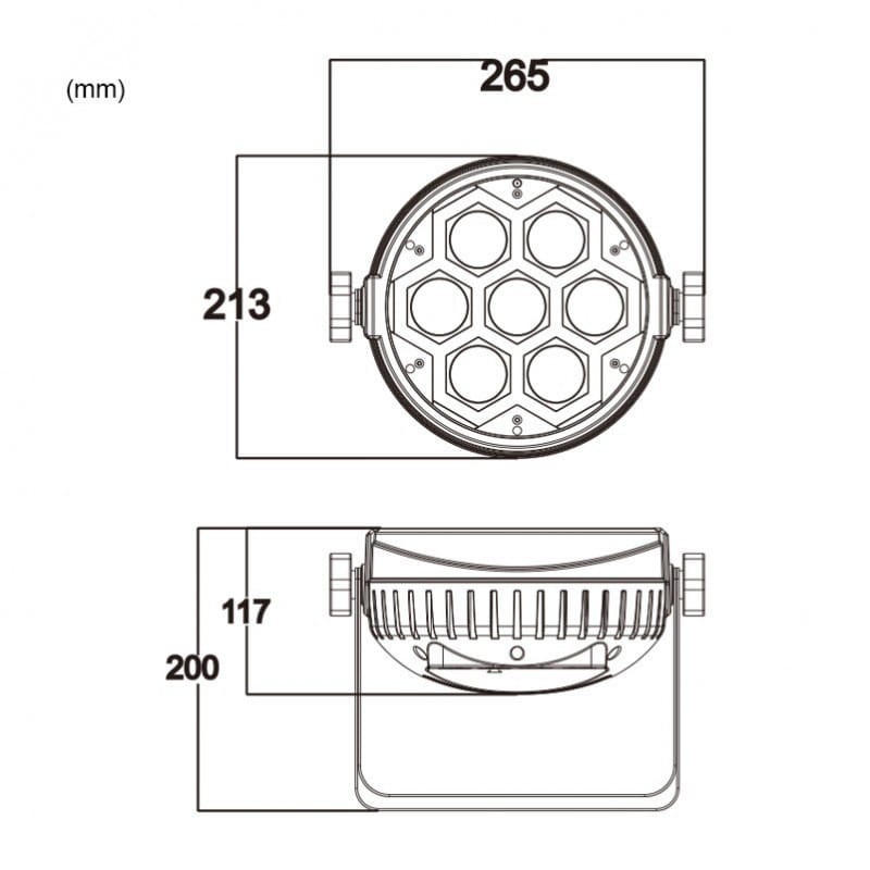 Led par posiada obudowę wykonaną z wytrzymałego tworzywa sztucznego odpornego na wysoką temperaturę oraz podwójny uchwyt umożliwiający jego pracę w pozycji stojącej lub instalację na statywach oświetleniowych, kratownicach scenicznych i trawersach. Z tyłu mieszczą się złącza zasilania powercon, w tym tzw. „podaj dalej” umożliwiające przekazywanie napięcia bezpośrednio z urządzenia do urządzenia, co eliminuje konieczność stosowania dodatkowego okablowania. 3-stykowe gniazda XLR pozwalają kontrolować oświetlacz za pomocą protokołu DMX. Jednostka może pracować również w trybie automatycznym, trybie sterowania dźwiękiem, a także w zestawieniach master-slave.