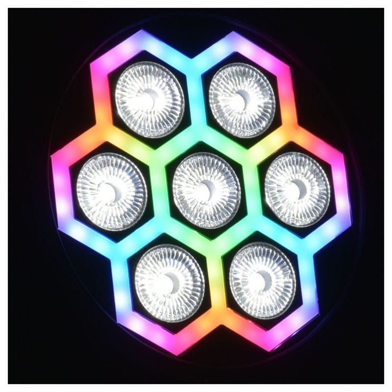 LIGHT4ME FRAME PAR 7x12 LED RGBW to nowoczesny reflektor sceniczny LED z efektami neonu i tęczy, który dedykowany jest realizatorom oświetlenia poszukującym nietypowych i nowatorskich rozwiązań. Sprzęt, oprócz tradycyjnego systemu siedmiu diod, posiada świetlną ramę dookoła każdej z nich, która swoim układem przypomina plaster miodu. Takie rozwiązanie pozwala na tworzenie dodatkowych efektów świetlnych i sprawia, że nasza instalacja oświetleniowa odróżnia się od innych. Dodatkowo Frame Par posiada ciekawe ulepszenie w postaci filtrów konwersyjnych CTB i CTO, które umożliwiają zmianę temperatury barwowej światła. Precyzyjny system mieszania kolorów pozwala na pracę z paletą ponad 16 milionów kombinacji.