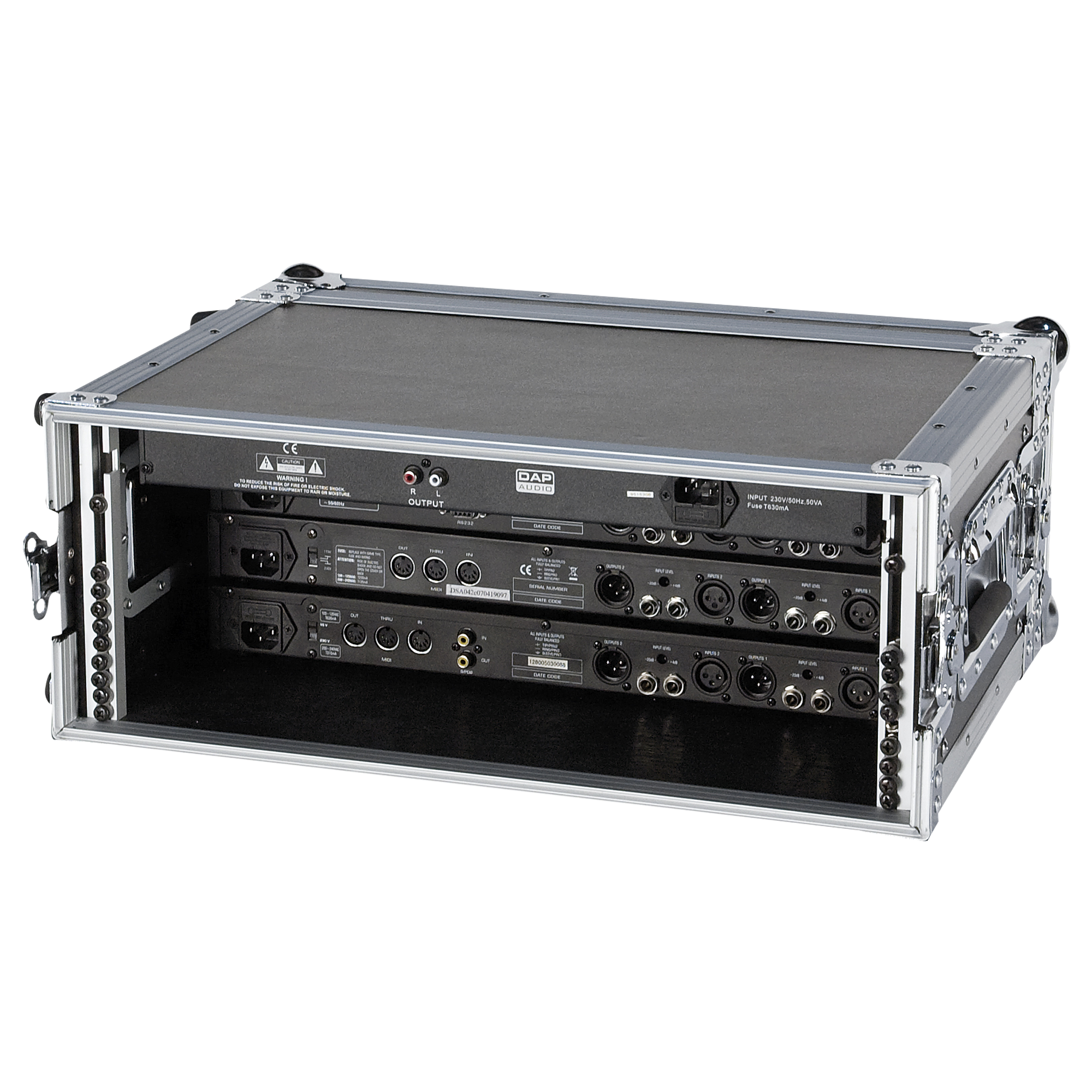 Głębokość tej obudowy jest mniejsza niż w przypadku zwykłej obudowy wzmacniacza, dzięki czemu bardzo wygodnie jest zamontować i okablować cały sprzęt przetwarzający sygnał efektowy.