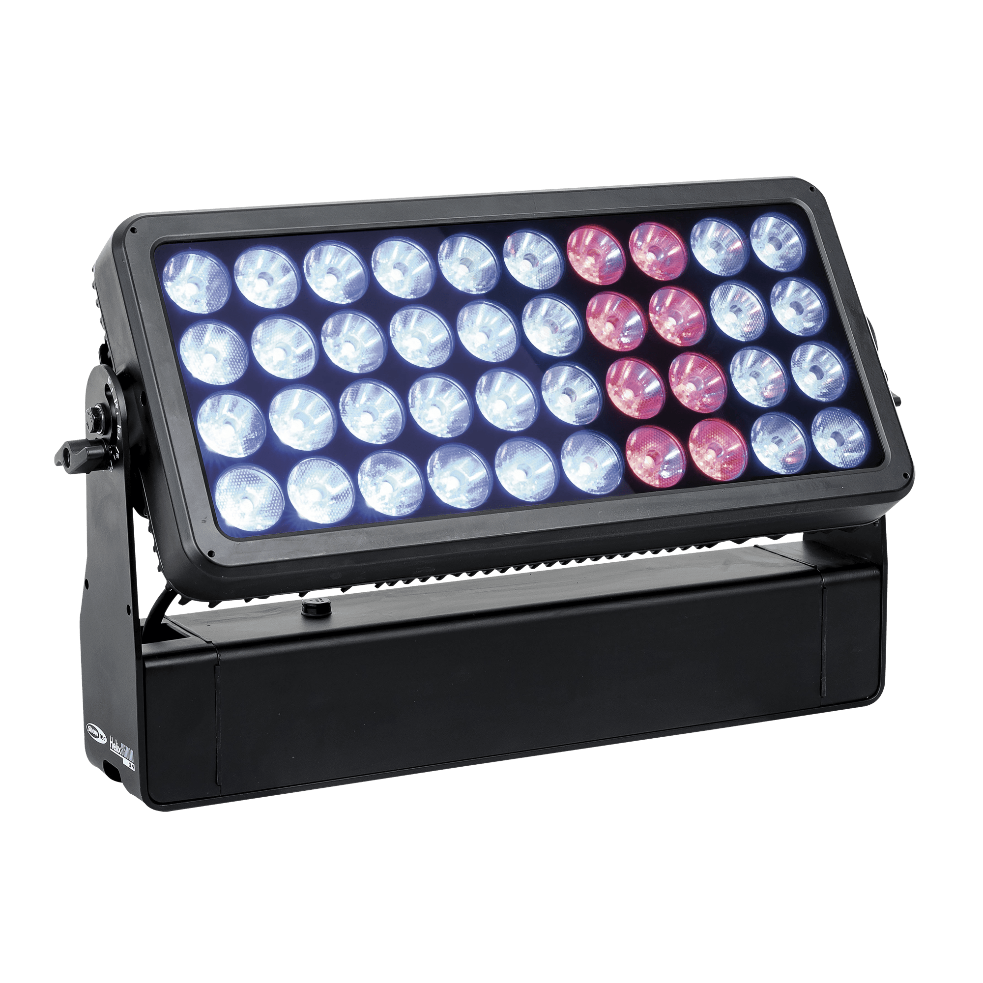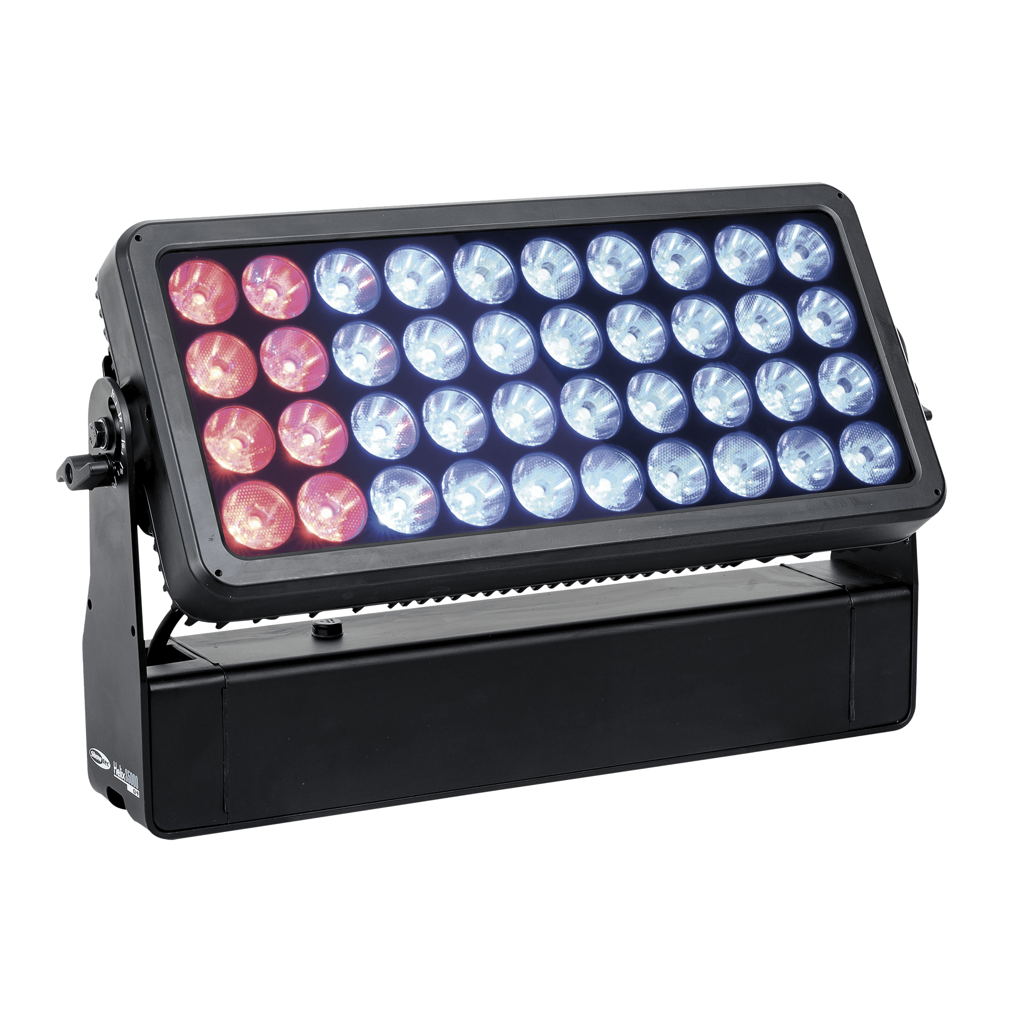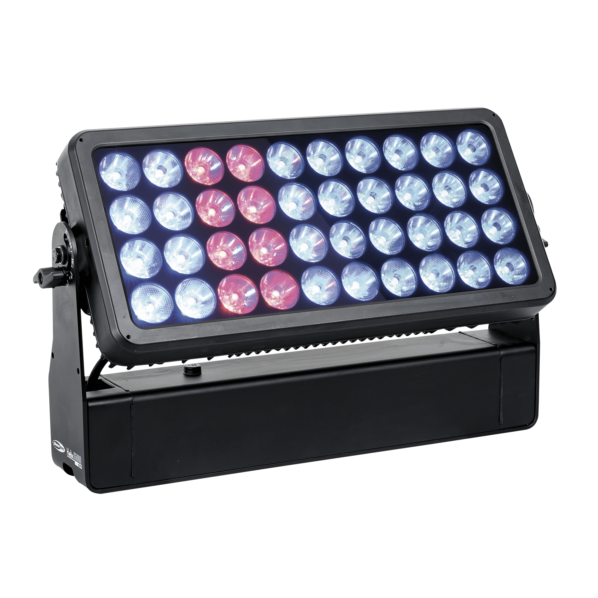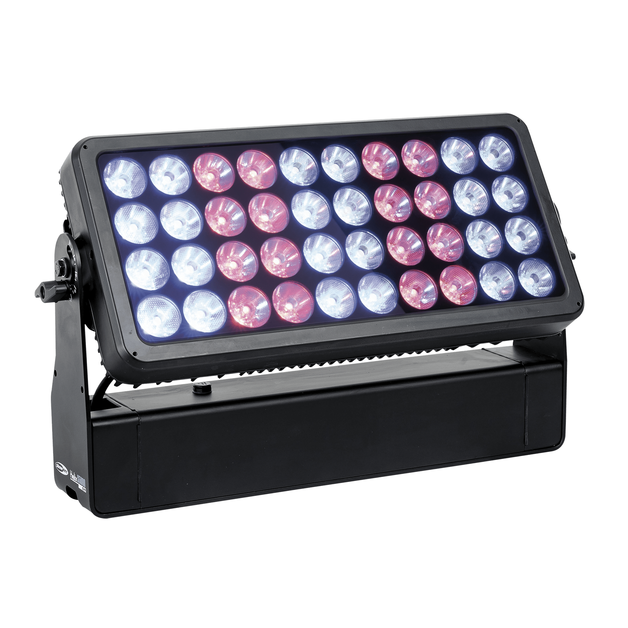 Showtec Helix S5000 Q4 to naświetlacz LED RGBW o mocy 40 x 10 W i stopniu ochrony IP65, przeznaczony do zastosowań zewnętrznych. Kąt wiązki wynoszący 10° można rozszerzyć do 20°, 40°, 15° x 60° i 90° za pomocą dedykowanego kształtownika wiązki. Diody LED Helix S5000 Q4 można podzielić na 5 oddzielnych sekcji, co pozwala na tworzenie oszałamiających efektów. Lampe można ręcznie obrócić o 180° i sterować nią za pomocą W-DMX (bezprzewodowo), DMX oraz Master/Slave w trybie ręcznym i automatycznym z wieloma wbudowanymi programami. Połączenie bezprzewodowe jest kompatybilne ze starszymi urządzeniami obsługującymi W-DMX, pod warunkiem użycia tylko jednego trybu (G3). Helix S5000 Q4 jest dostarczany z kablem powerCON True 1, panelem montażowym, gumowymi nóżkami i uchwytem Quick-Lock.