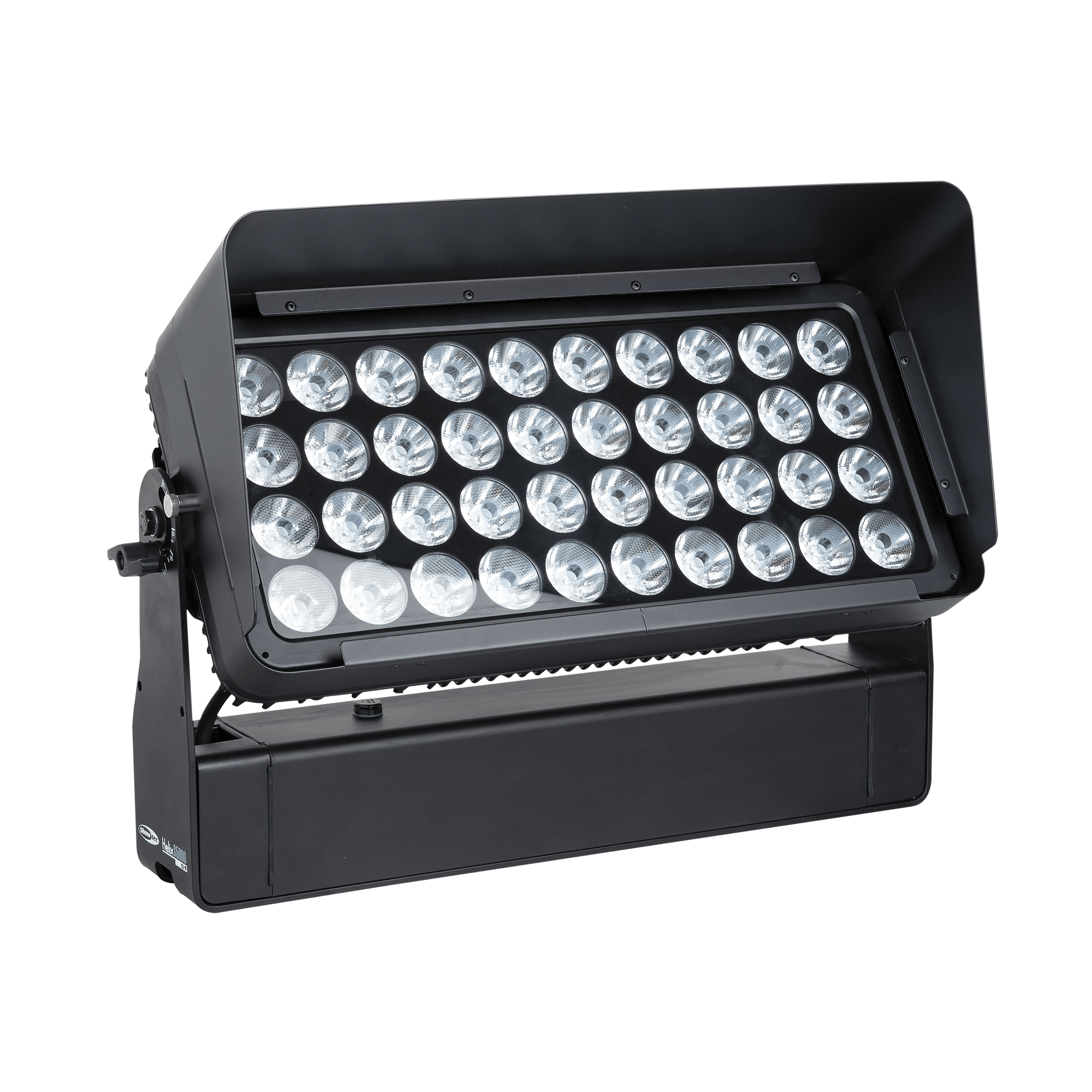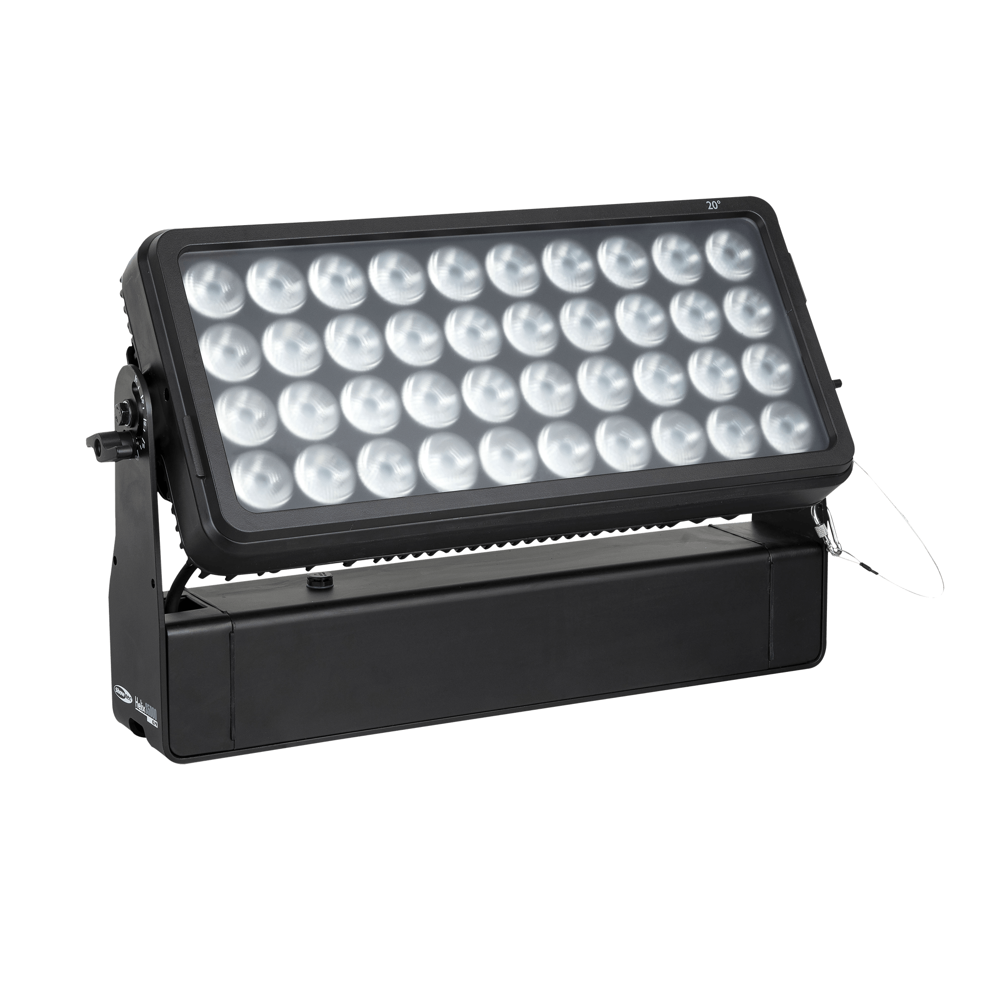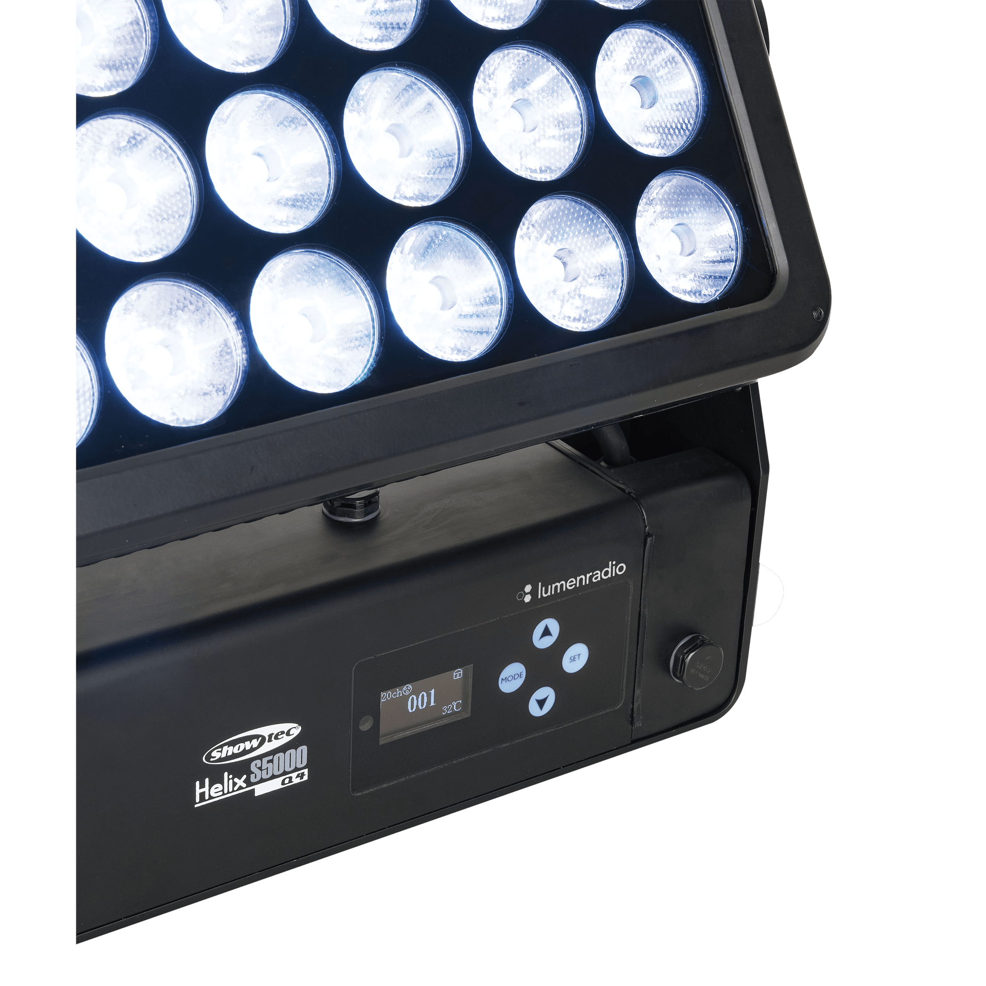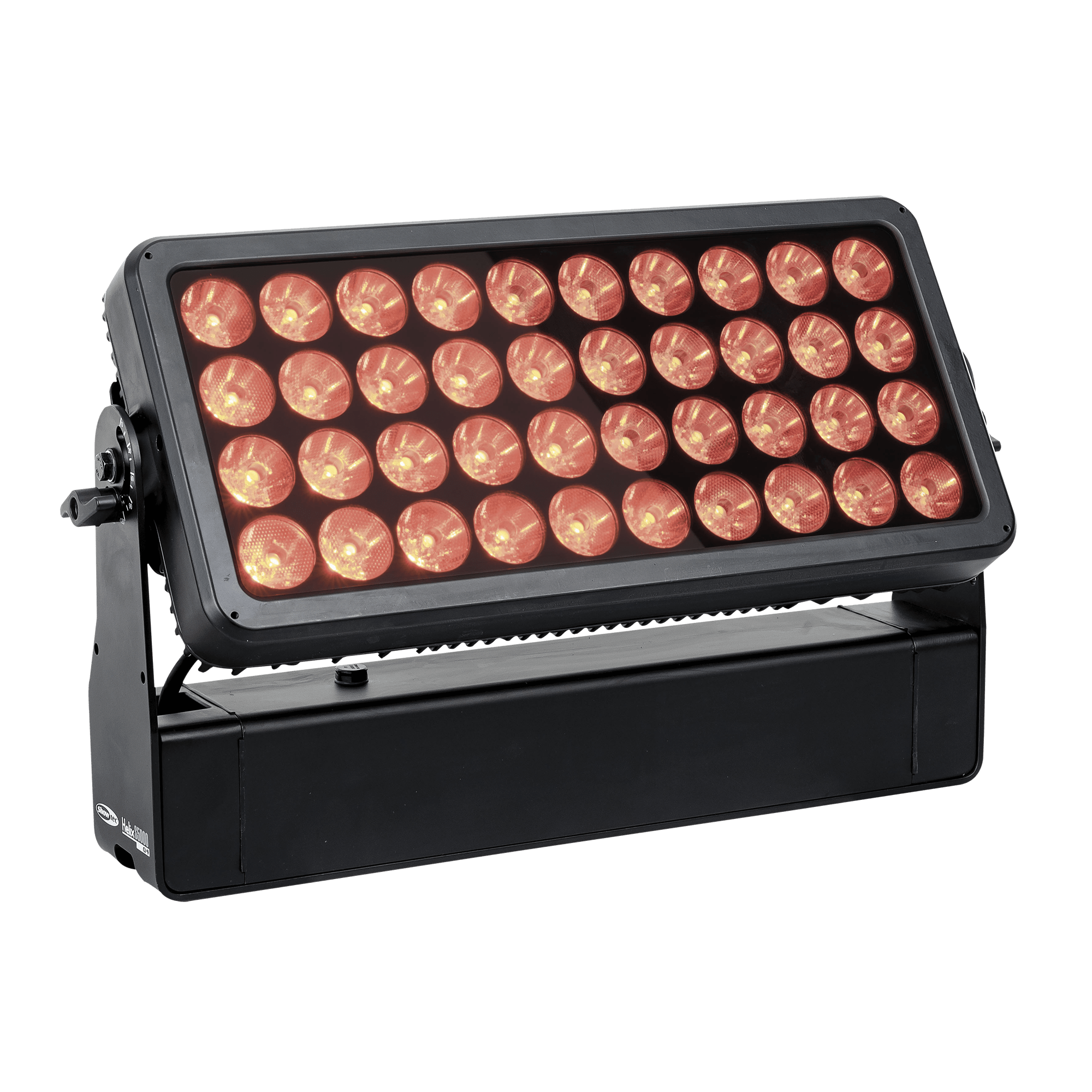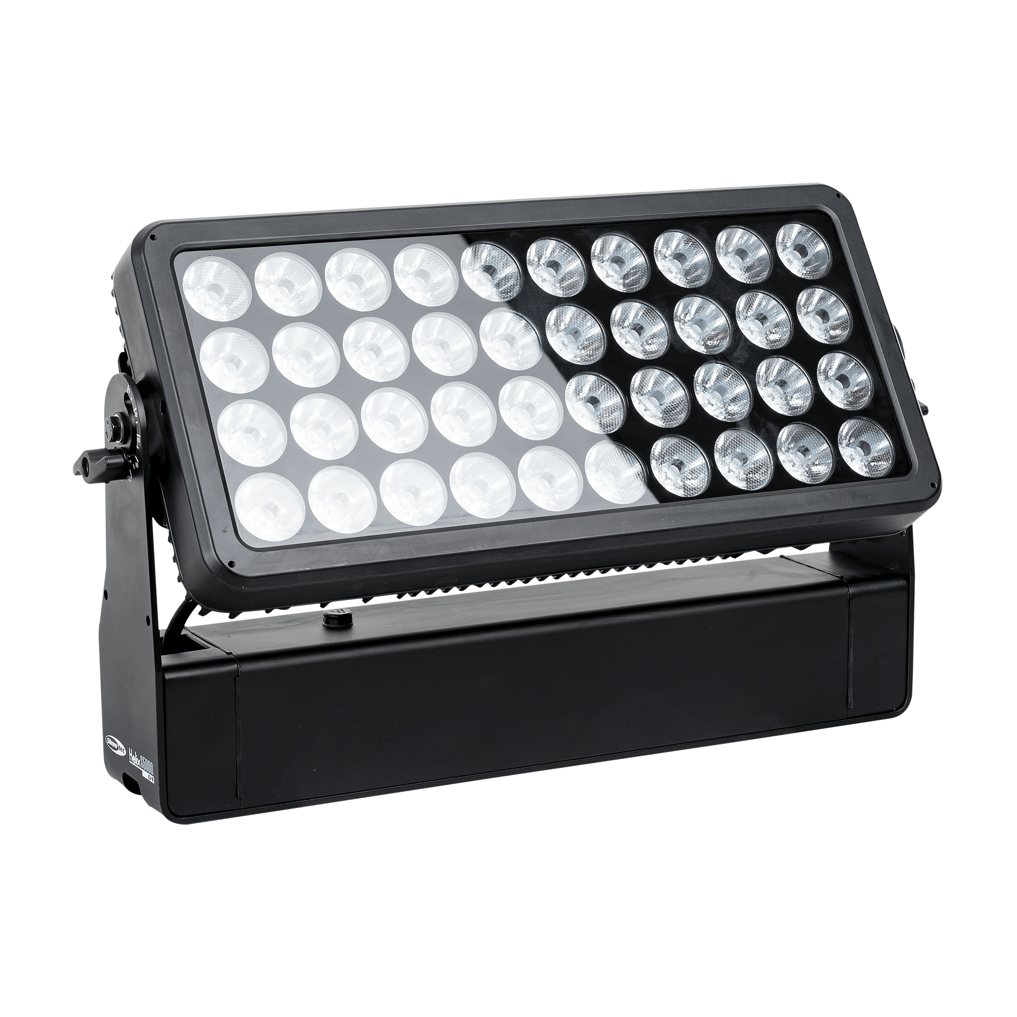 Showtec Helix S5000 Q4 to naświetlacz LED RGBW o mocy 40 x 10 W i stopniu ochrony IP65, przeznaczony do zastosowań zewnętrznych. Kąt wiązki wynoszący 10° można rozszerzyć do 20°, 40°, 15° x 60° i 90° za pomocą dedykowanego kształtownika wiązki. Diody LED Helix S5000 Q4 można podzielić na 5 oddzielnych sekcji, co pozwala na tworzenie oszałamiających efektów. Lampe można ręcznie obrócić o 180° i sterować nią za pomocą W-DMX (bezprzewodowo), DMX oraz Master/Slave w trybie ręcznym i automatycznym z wieloma wbudowanymi programami. Połączenie bezprzewodowe jest kompatybilne ze starszymi urządzeniami obsługującymi W-DMX, pod warunkiem użycia tylko jednego trybu (G3). Helix S5000 Q4 jest dostarczany z kablem powerCON True 1, panelem montażowym, gumowymi nóżkami i uchwytem Quick-Lock.