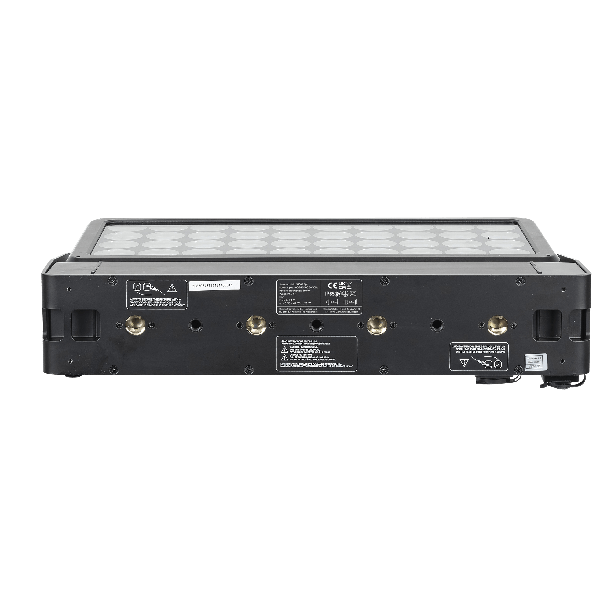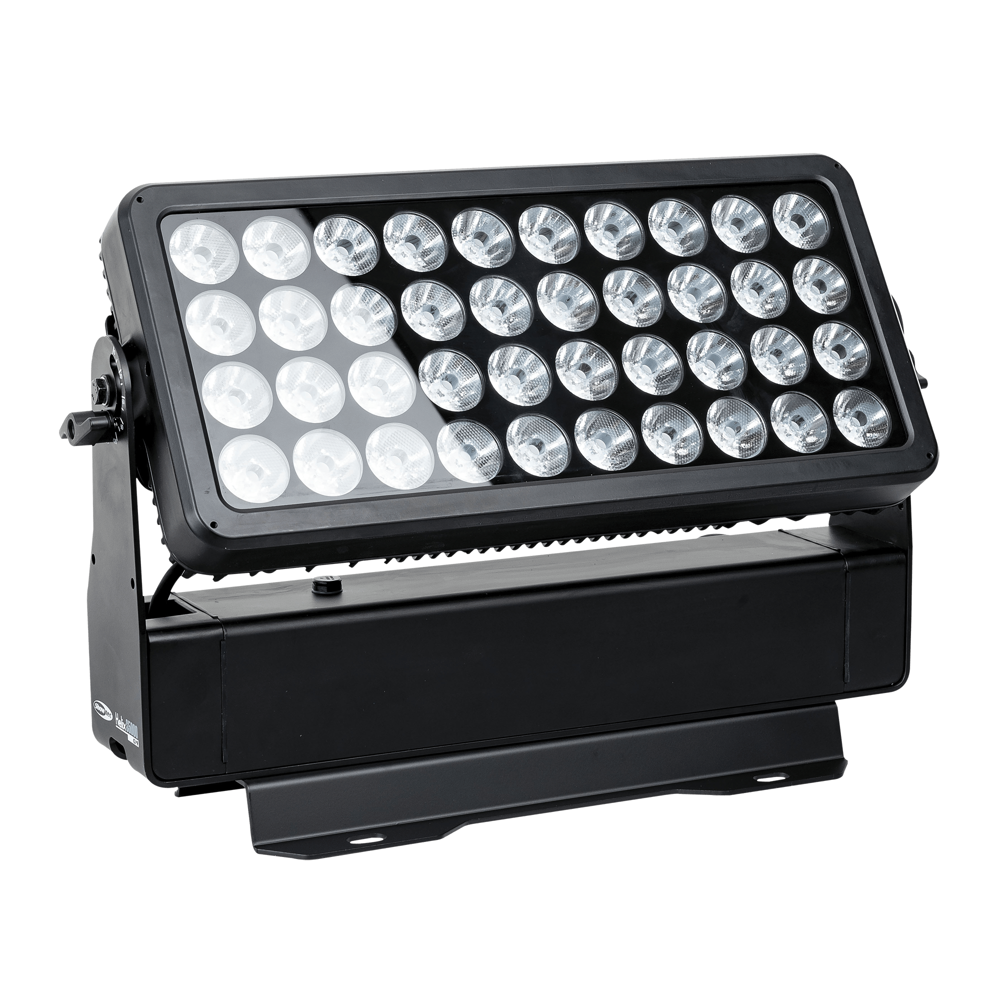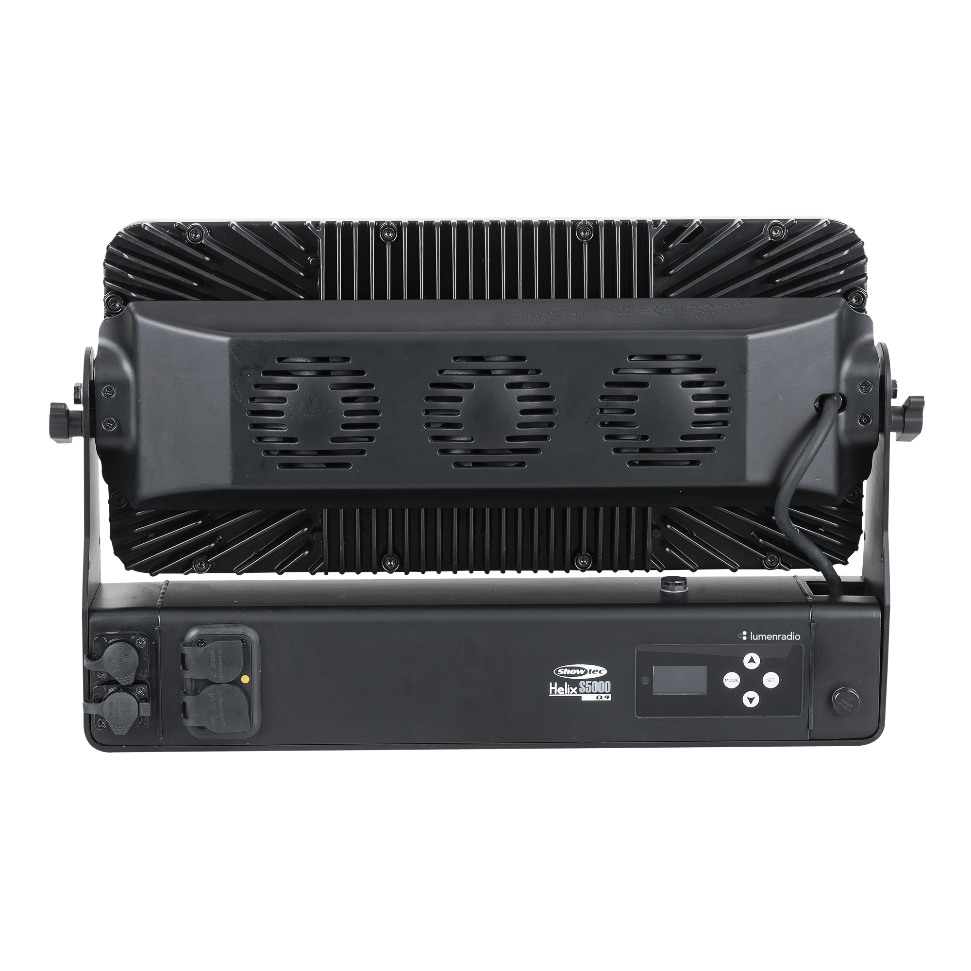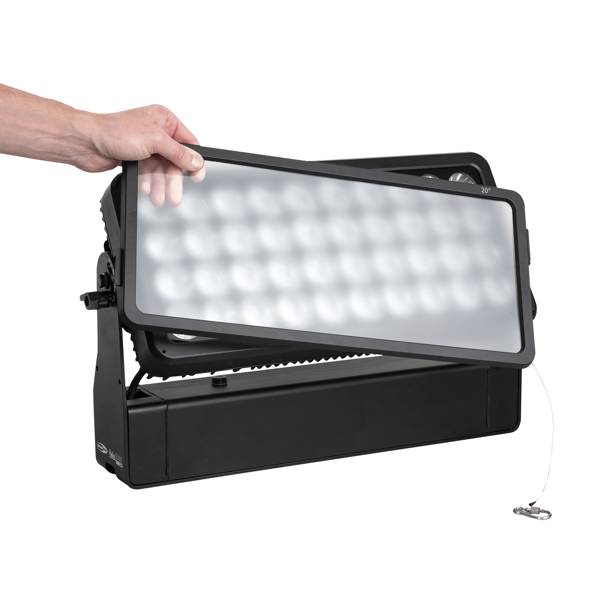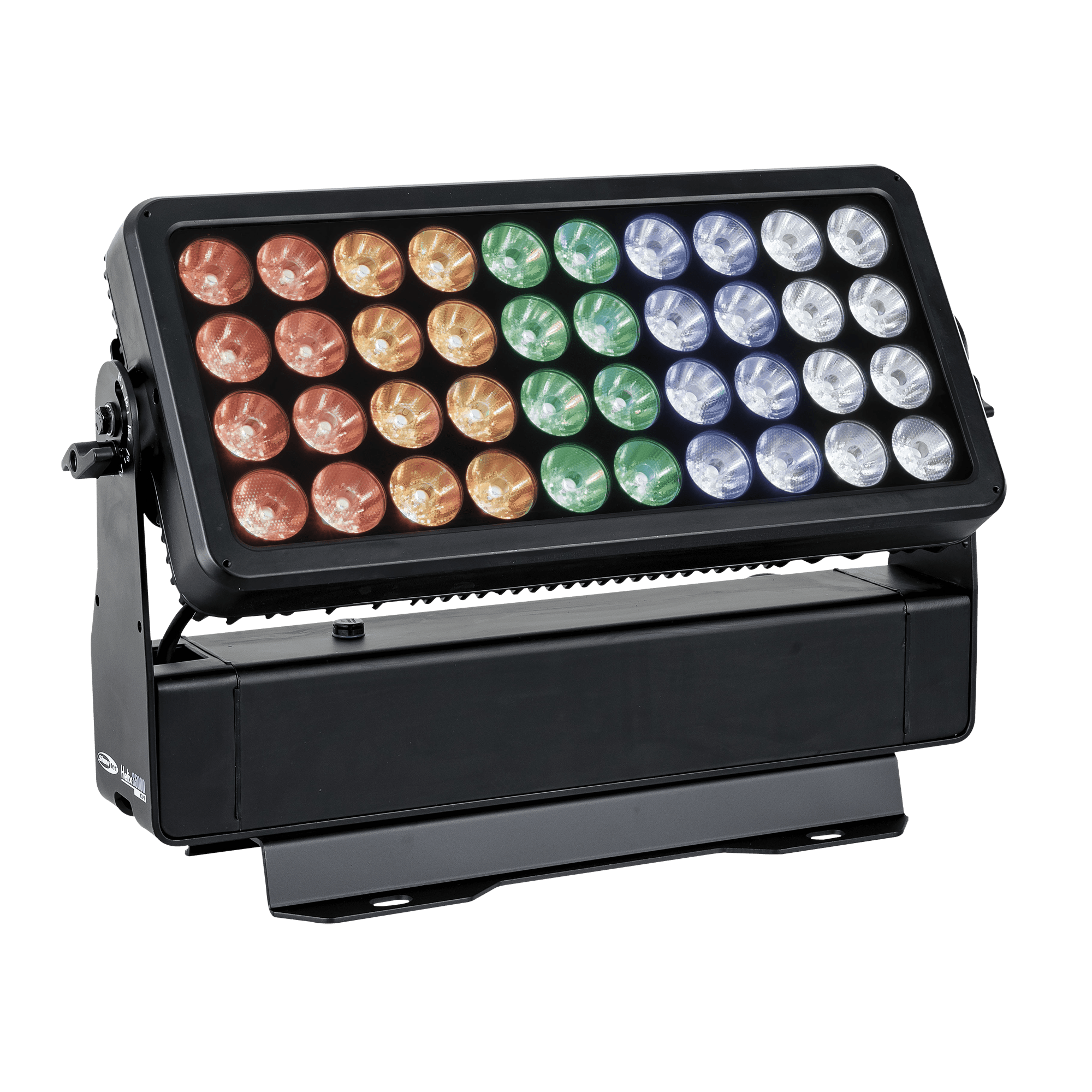 Showtec Helix S5000 Q4 to naświetlacz LED RGBW o mocy 40 x 10 W i stopniu ochrony IP65, przeznaczony do zastosowań zewnętrznych. Kąt wiązki wynoszący 10° można rozszerzyć do 20°, 40°, 15° x 60° i 90° za pomocą dedykowanego kształtownika wiązki. Diody LED Helix S5000 Q4 można podzielić na 5 oddzielnych sekcji, co pozwala na tworzenie oszałamiających efektów. Lampe można ręcznie obrócić o 180° i sterować nią za pomocą W-DMX (bezprzewodowo), DMX oraz Master/Slave w trybie ręcznym i automatycznym z wieloma wbudowanymi programami. Połączenie bezprzewodowe jest kompatybilne ze starszymi urządzeniami obsługującymi W-DMX, pod warunkiem użycia tylko jednego trybu (G3). Helix S5000 Q4 jest dostarczany z kablem powerCON True 1, panelem montażowym, gumowymi nóżkami i uchwytem Quick-Lock.