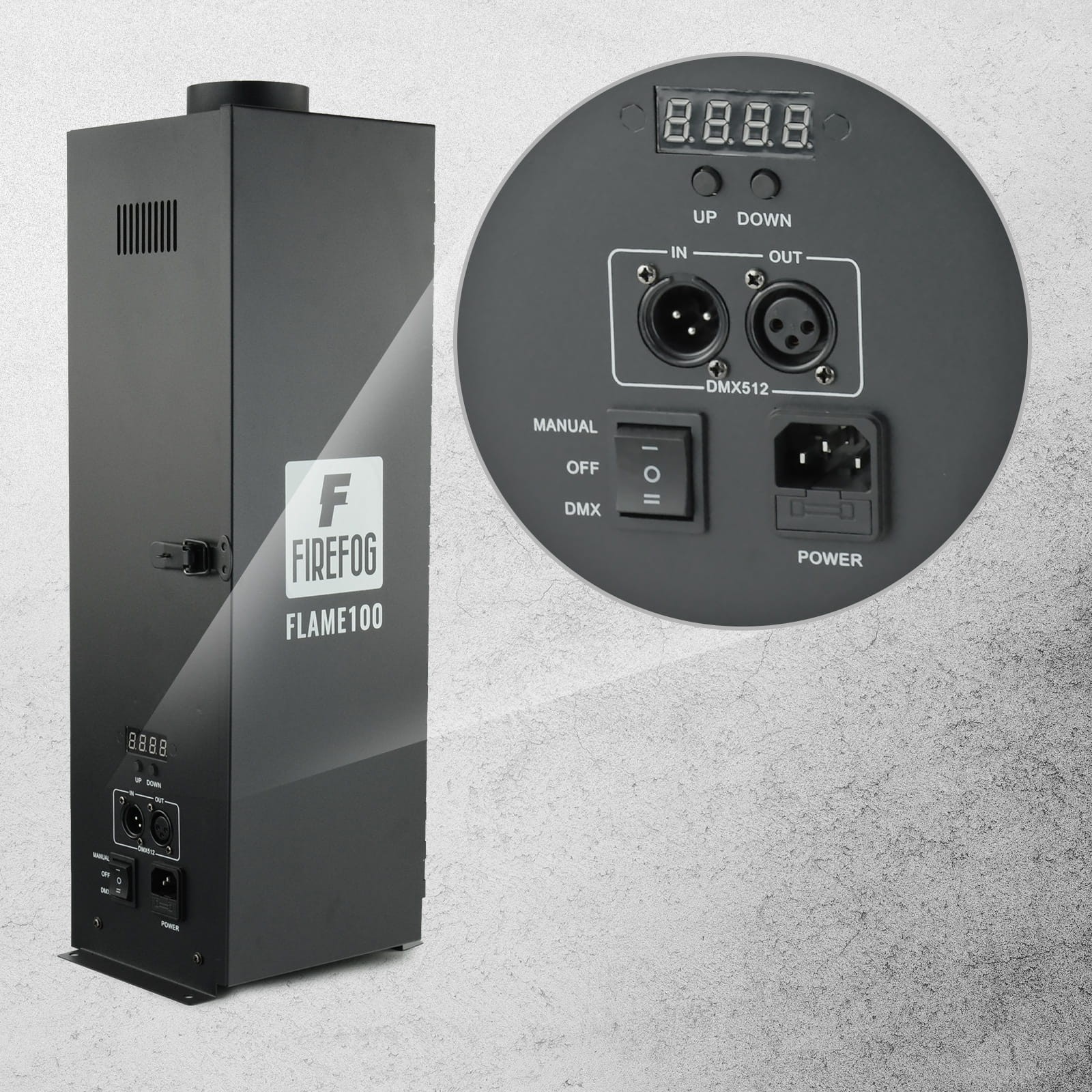 Maszynę FLAME100 Firefog można łatwo kontrolować za pomocą protokołu DMX 512, co zapewnia pełną integrację z istniejącymi systemami oświetleniowymi i efektami scenicznymi. Dostępne są dwa tryby efektów: